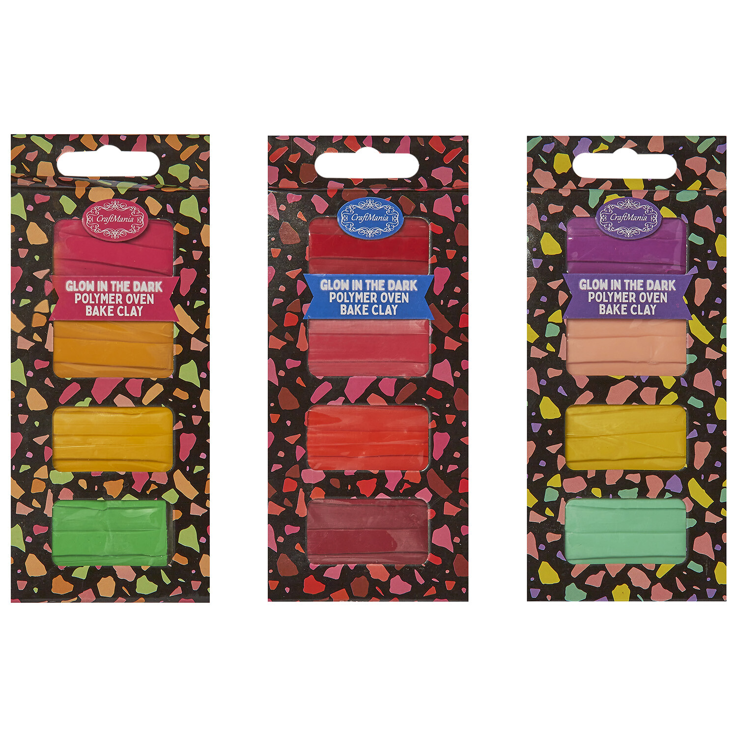 Make awesome miniature creations with this Pack of 4 Glow In The Dark Polymer Oven Bake Clay. Available in assorted styles, each pack contains four different colours, each to be 20g and individually wrapped. Ideal for keeping the children and adults engaged, it's a perfect set for experimenting with.