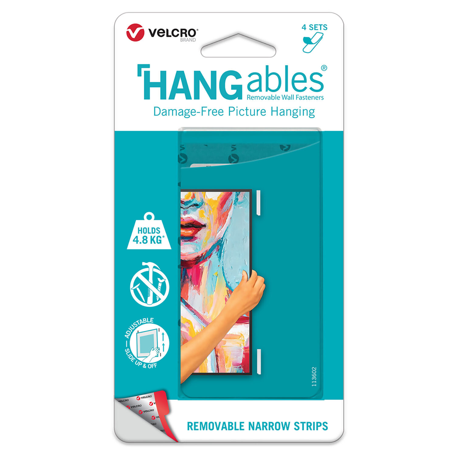 Easily hang pictures without nails, hooks, or drilling with the Pack of 4 Hangables Narrow Strips. Ideal for anyone who wants a damage-free solution for decorating their walls, these narrow strips are designed for thin frames. You can simply use the easy-peel tab for quick and clean removal, leaving no sticky residue or holes behind.