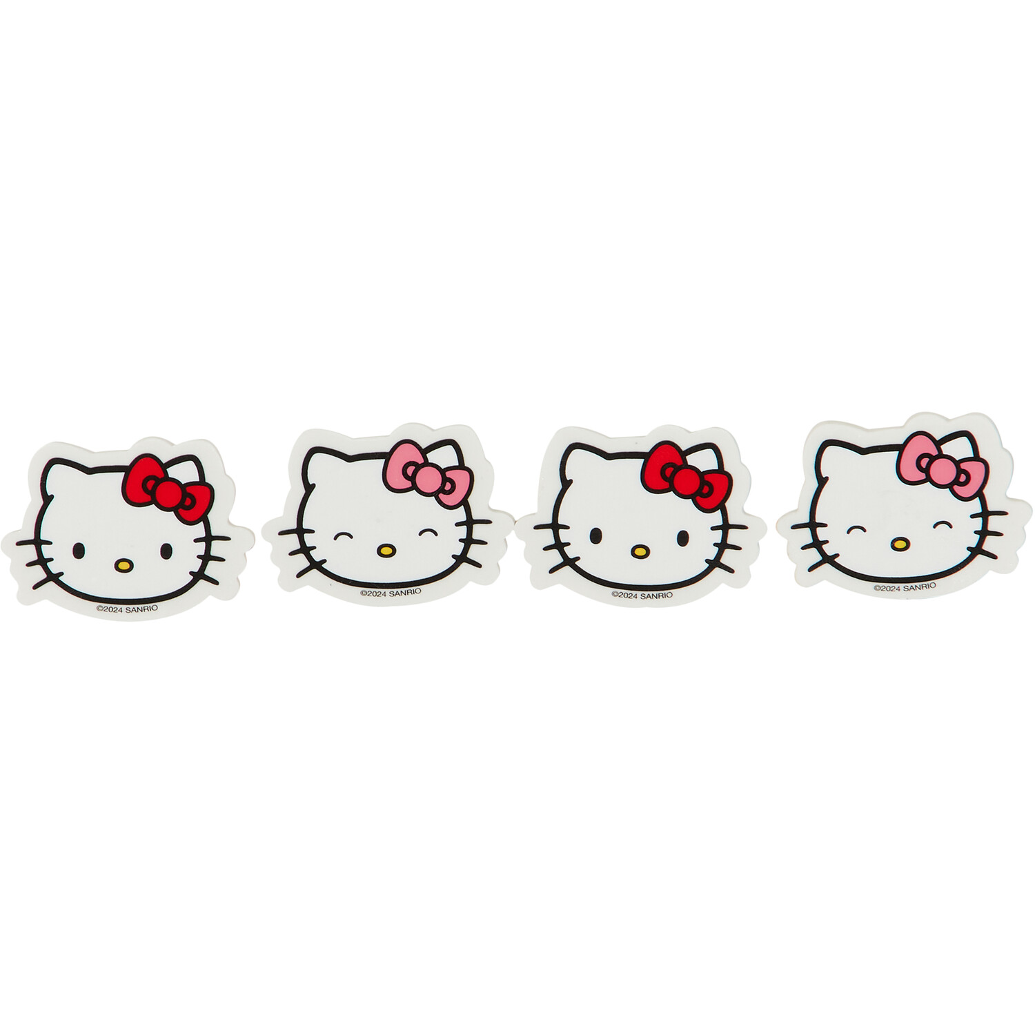 Feel free to unleash your creativity with this pack of 4 Hello Kitty erasers. Perfect for Hello Kitty fans, this set includes four Hello Kitty-shaped erasers, allowing you to correct mistakes while drawing or writing. It's an excellent addition to your stationery collection, ideal for use at school, work, or home.