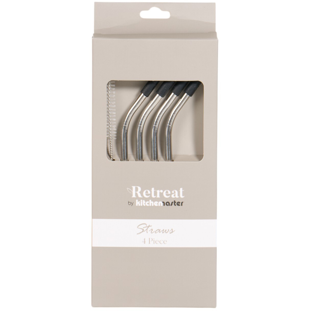 Enjoy your beverages in style with the Pack of 4 Retreat Stainless Steel Straws. These straws feature a strong, rust-resistant build and dishwasher-safe design for easy cleaning, making them an excellent choice for sipping refreshing beverages in style.