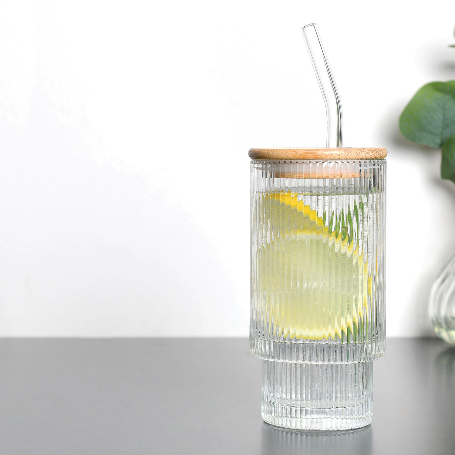 Keep yourself hydrated with this Pack of 4 Ribbed Tumblers with Lid and Straw. Simple yet stylish, these tumblers feature a ribbed design and clear exterior to view your drink. Perfect for sipping on iced teas, mojitos, juices or even water, the tumblers include a straw for hassle-free use. Made using 100% food-grade material, they are healthy and safe.