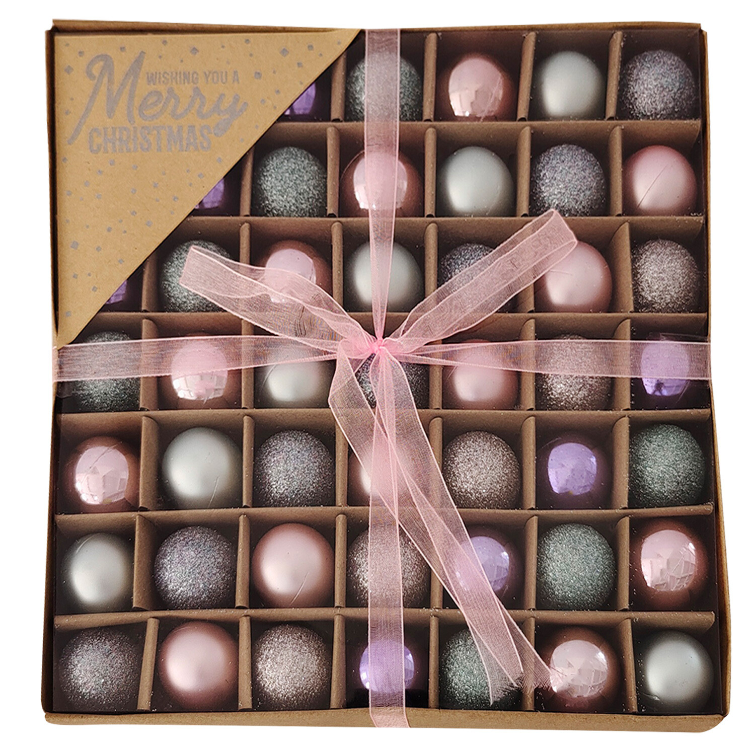 This Pack of 49 Pastel Baubles is a magical, fairytale collection for any Christmas tree. The baubles come in various colours and finishes, giving your Christmas tree and decorations an adorable and whimsical feel. These colourful festive ornaments will look beautiful hanging from any Christmas tree.