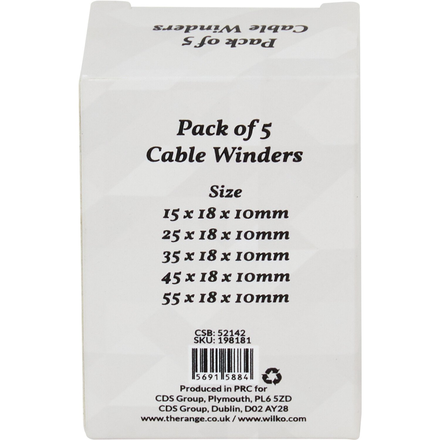 Say goodbye to tangled cables with this Pack of 5 Cable Winders. These cable winders are essential for keeping your cables neat and perfectly organised. Lightweight and portable, you can use them to manage wires at home, offices or on-the-go. Available in an assortment of black or white colours, these handy cable winders are a must-have to keep electronic accessories arranged and accessible.