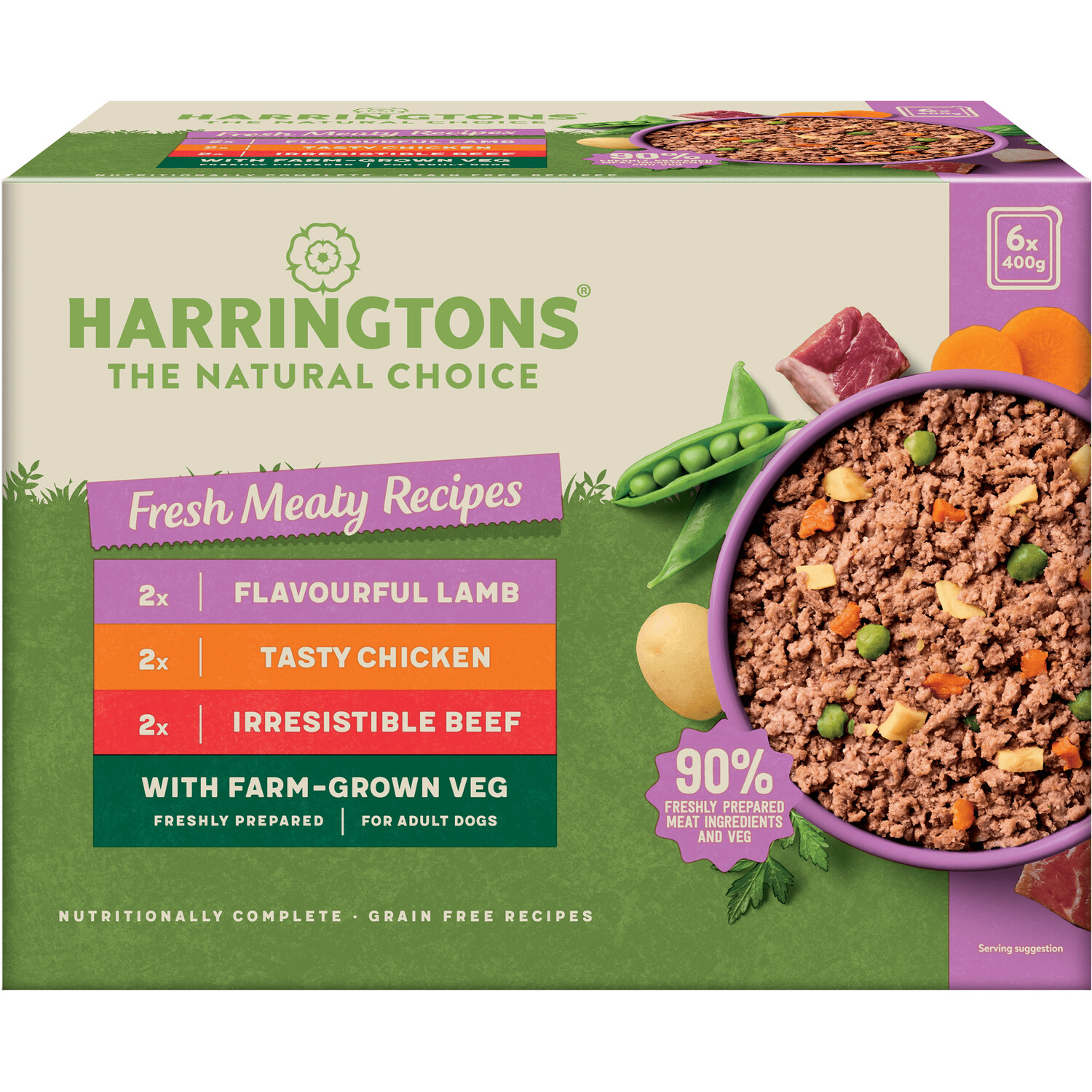 Nourish your pooch with the Pack of 6 Harringtons Grain Free Dog Food Trays 400g. Made with succulent meat and nutritious ingredients, this dog food offers a delicious flavour and plenty of nutrients to support your dog's health and well-being. It contains no artificial flavours, colours, or preservatives, making it a safe choice for your pet. It's grain-free and perfect for dogs with sensitive stomachs.