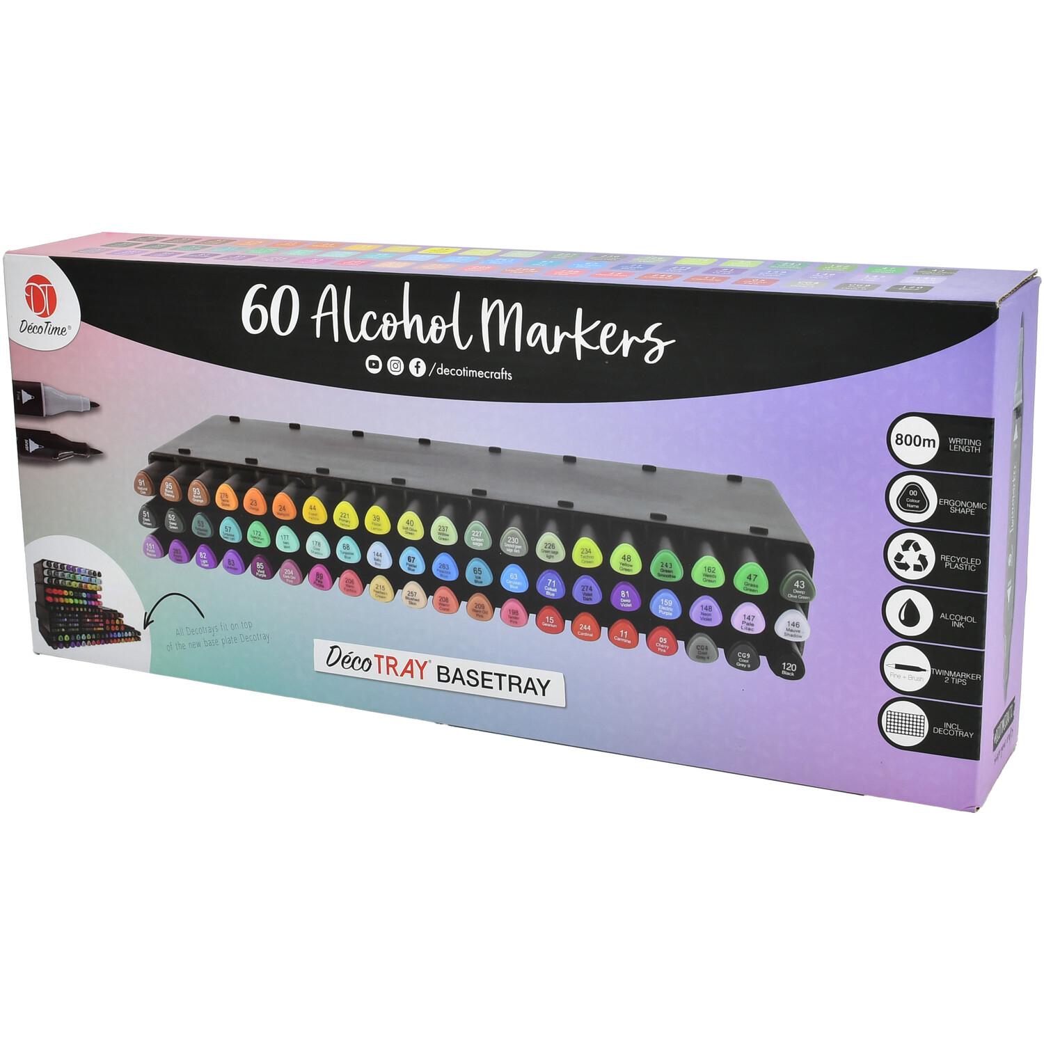Bring your creativity to life with this Pack of 60 DecoTime Alcohol Markers in Tray. Designed for artists, students, and hobbyists, these markers offer vibrant, blendable colours for smooth and professional-looking results. The set comes neatly organised in a sturdy decor base tray, keeping your markers tidy and easy to access.
