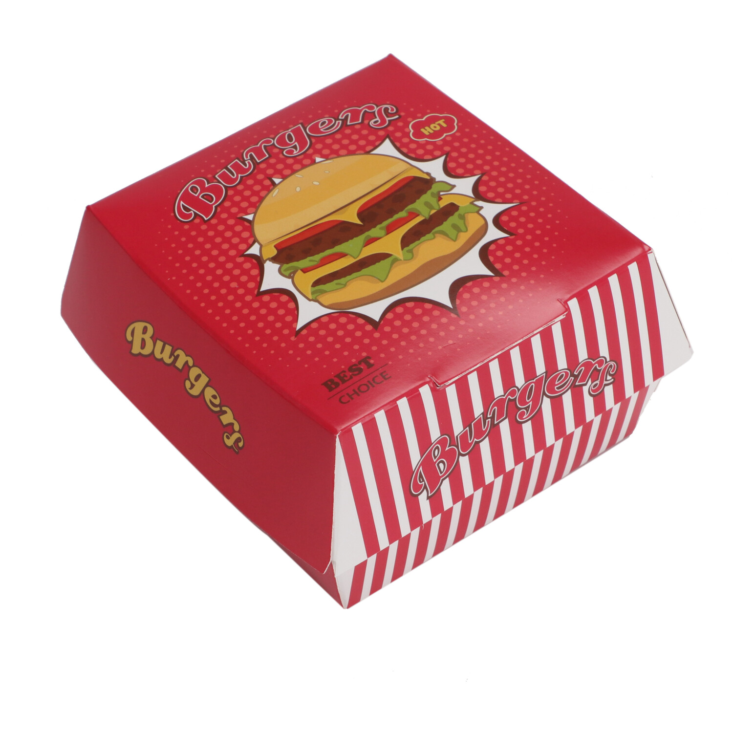The Pack of 8 Burger Boxes are functional and stylish boxes that are perfect for serving up burgers, sandwiches, and other tasty treats. Designed with a vibrant American-style pattern that is sure to impress your guests. These boxes are not only practical but also add a touch of style to your food presentation. They are excellent for any occasion where you want to serve up some delicious food, such as parties, BBQs, or even fun family dinners. With a pack of 8 boxes, you'll have plenty to go around and can easily store any leftovers in them for later.
