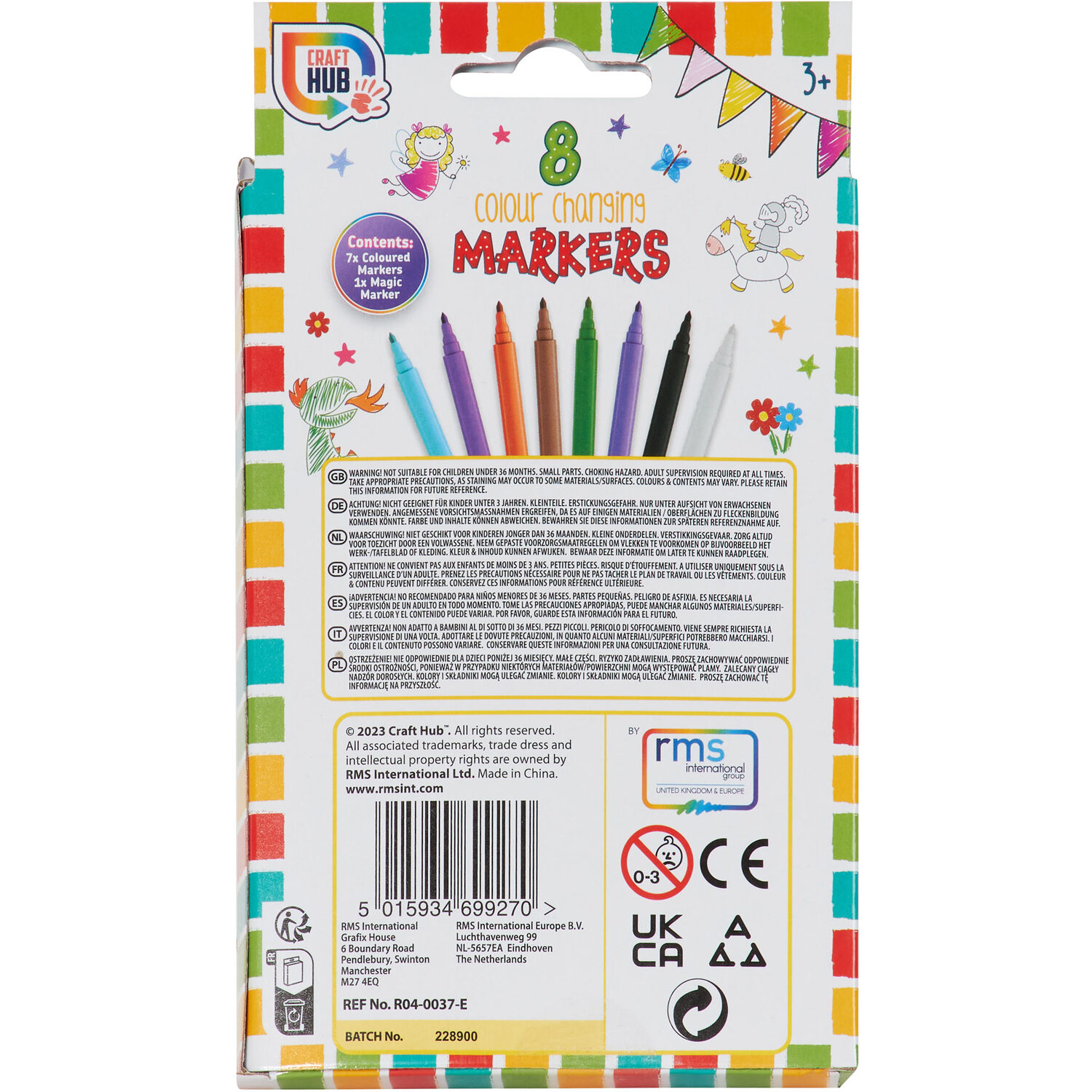 Explore the world of colour with this Pack of 8 Colour Change Markers. With a magic marker included, these amazing markers change colour as you create your masterpiece. Great fun for all kids, let them explore their creative side with the help of these fun pens.