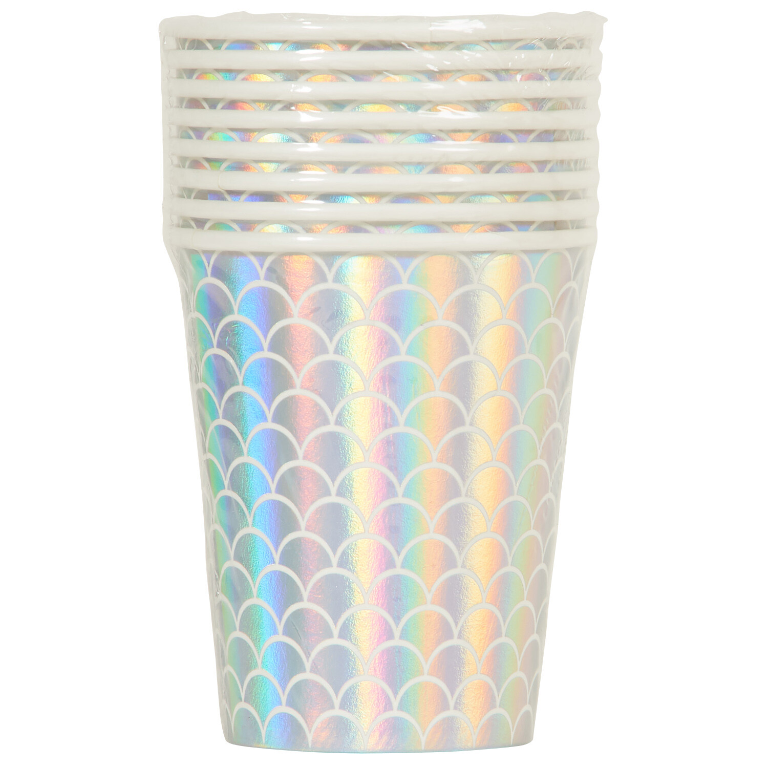 Serve drinks in style with this Pack of 8 Mermaid Party Paper Cups. Perfect for an amazing undersea adventure, these paper cups boast a fun design and beautiful colour. Ideal for serving juices, mocktails and more, they will surely add a touch of elegance and charm to any setting. Moreover, they can be coordinated with other items in the Mermaid collection to elevate your decor.