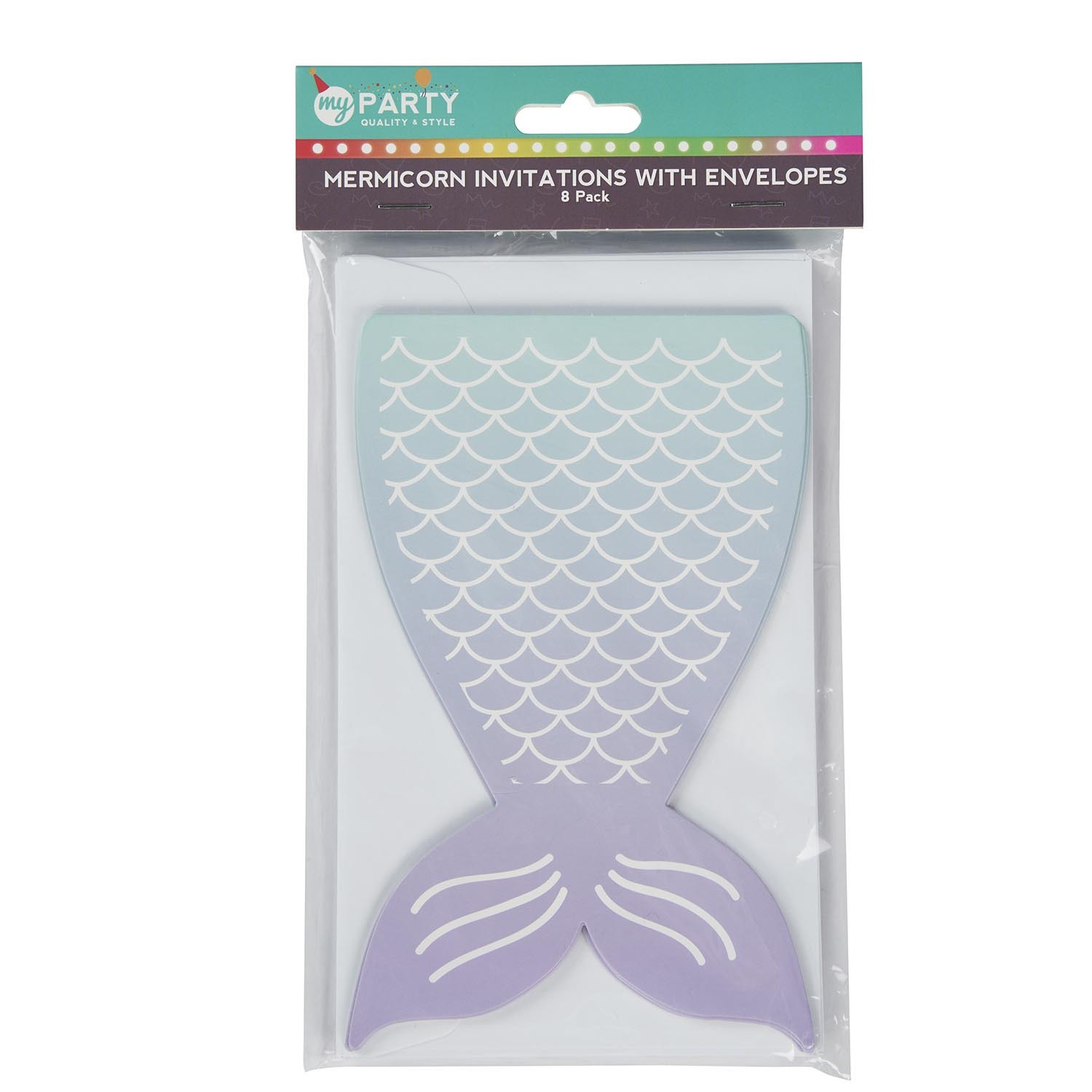 Get the party started and set the scene with this adorable Pack of 8 Mermicorn Invitations with Envelopes. Featuring a magical mermaid tail design in stunning pastel colours, these handy invites have space to write the date, time and address. These invitations are perfect for letting your partygoers know all the important information for the big day.