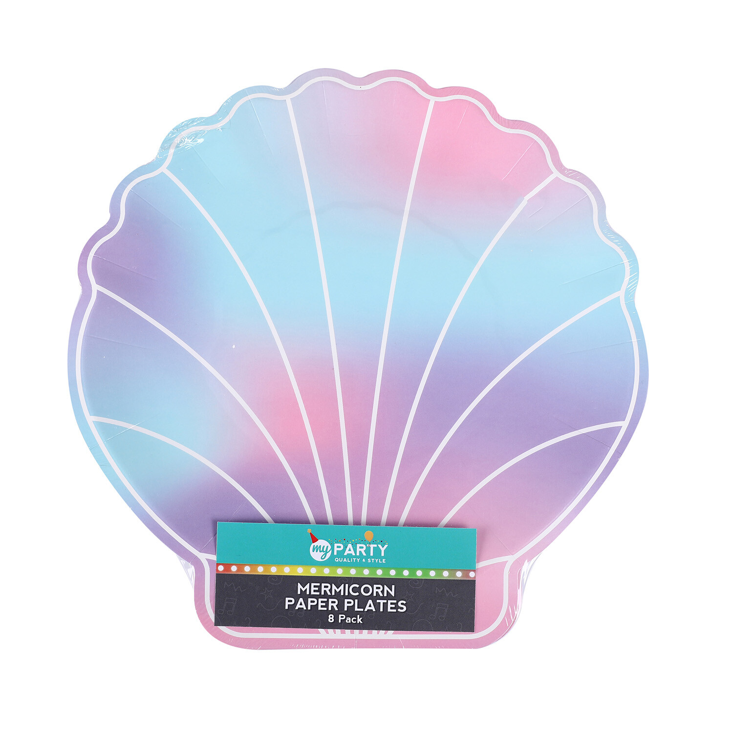 Add a dash of fantasy to your festivities with this Pack of 8 My Party Mermicorn Paper Plates. Perfect for creating a magical atmosphere at your next celebration, these plates are sure to delight guests of all ages. Featuring a seashell shape and bright colours, they add a touch of charm to your party table. These plates are ideal for serving appetizers, main courses and more.