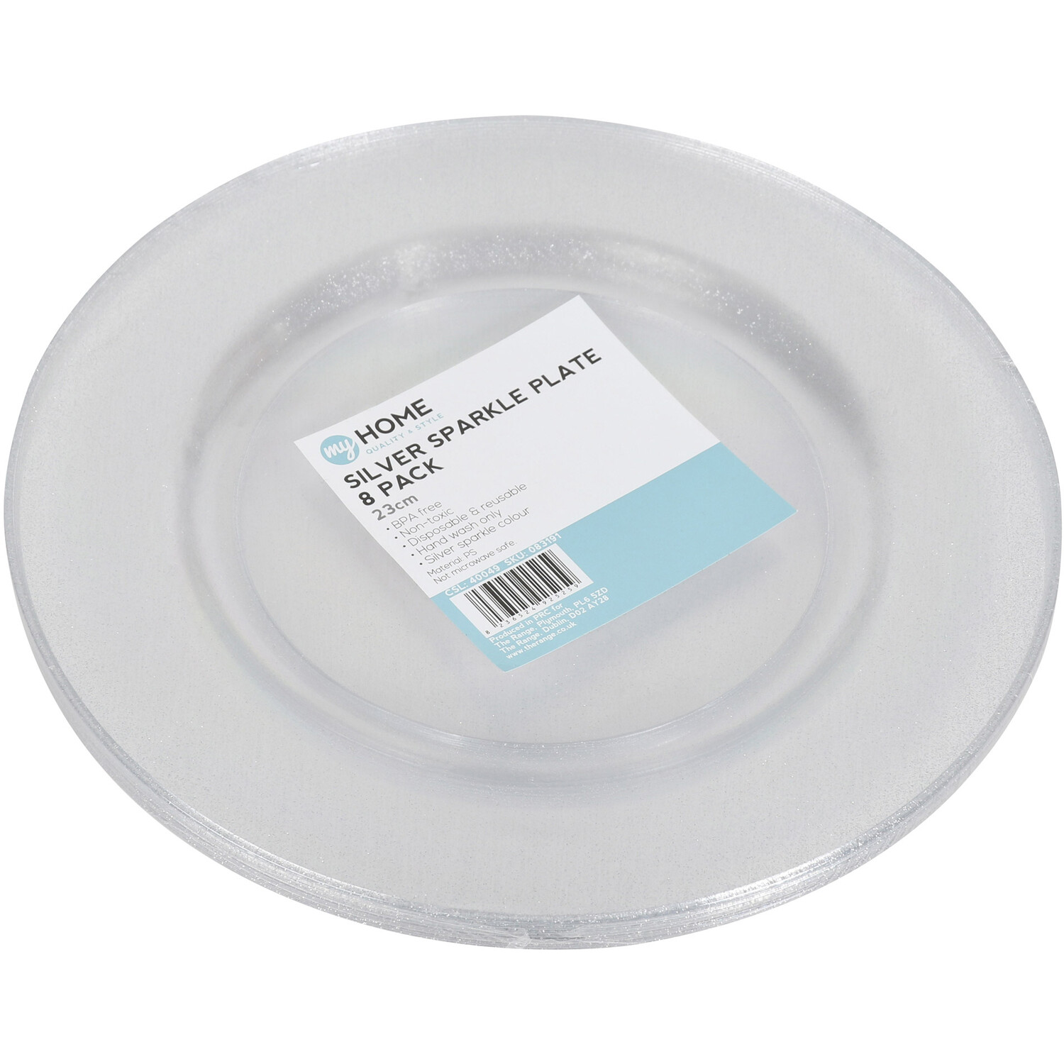 This Pack of 8 Silver Sparkle Plates is the perfect collection for parties and other special occasions. The plates are BPA-free and non-toxic, with a beautiful silver glitter design for a subtle shimmer. The dishes are easy to clean, disposable, and reusable for convenience. They're sure to look great on any dining or buffet table.