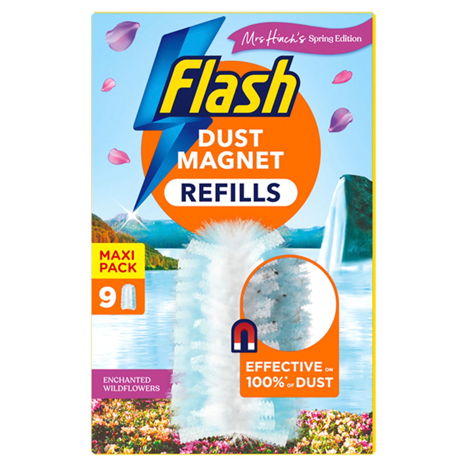 Maintain a spotless home with the Pack of 9 Flash Enchanted Wildflowers Duster Refills. These duster refills feature fluffy fibres that trap three times more dust than a traditional feather duster, effectively capturing 100% of the dust. With nine refills included, they are ideal for cleaning shelves, cupboards, and hard-to-reach areas.