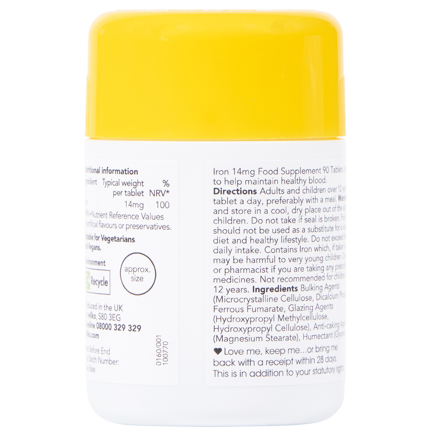 Support your daily health with this Pack of 90 Iron Tablets 14mg. Designed to help maintain normal energy levels and reduce tiredness, these tablets provide essential iron to support overall well-being. Each tablet helps increase iron intake in your body, helping you stay fit and healthy.