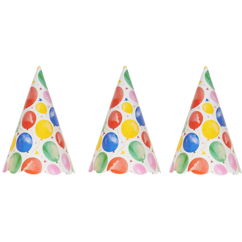 Get the party started with this Pack of Eight Balloon Party Hats. Featuring multiple coloured balloons and stars to get you into the celebration spirit. Match these hats with other items in our party collection to create a fun themed party.