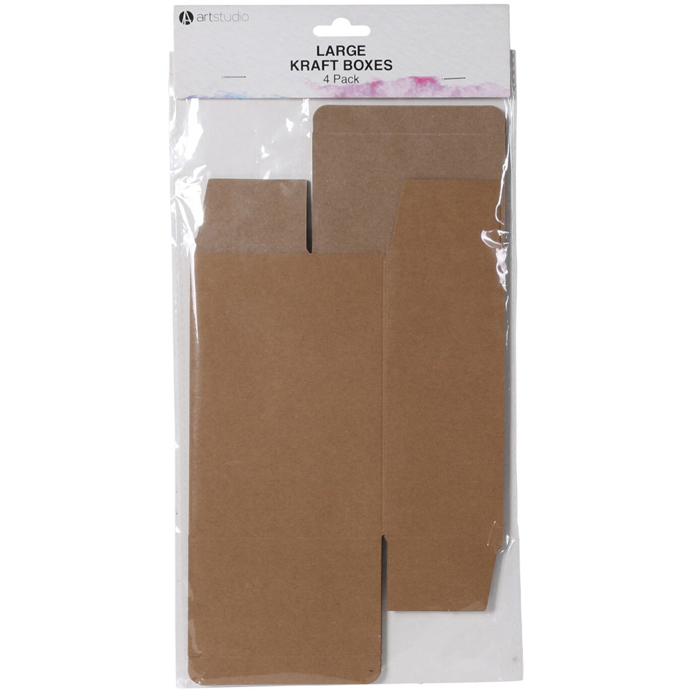 Quick and easy to put together, this Pack of Four Art Studio Large Kraft Boxes are excellent for using as gift boxes for homemade jewellery, small decorations, ornaments and more. These kraft boxes can be left as they are for a more natural appearance, or decorated with paints, glitter or small embellishments.