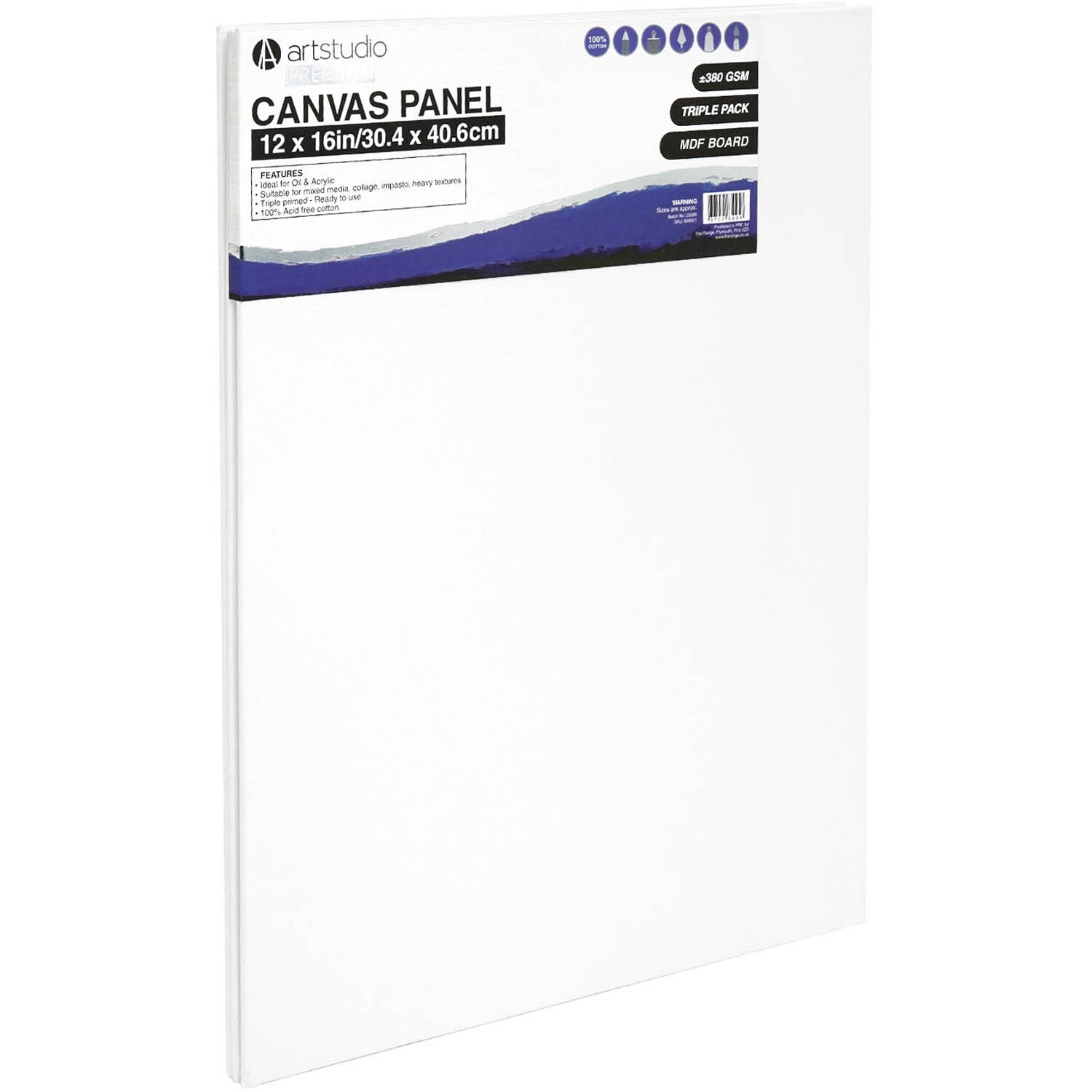 Get stocked up on art supplies with this handy Pack of Three Art Studio Premium Canvas Panel. Triple primed and ready to use, this canvas is excellent for oil and acrylic paints, mixed medias and other heavy textures. Perfect for students, professionals and beginners alike.