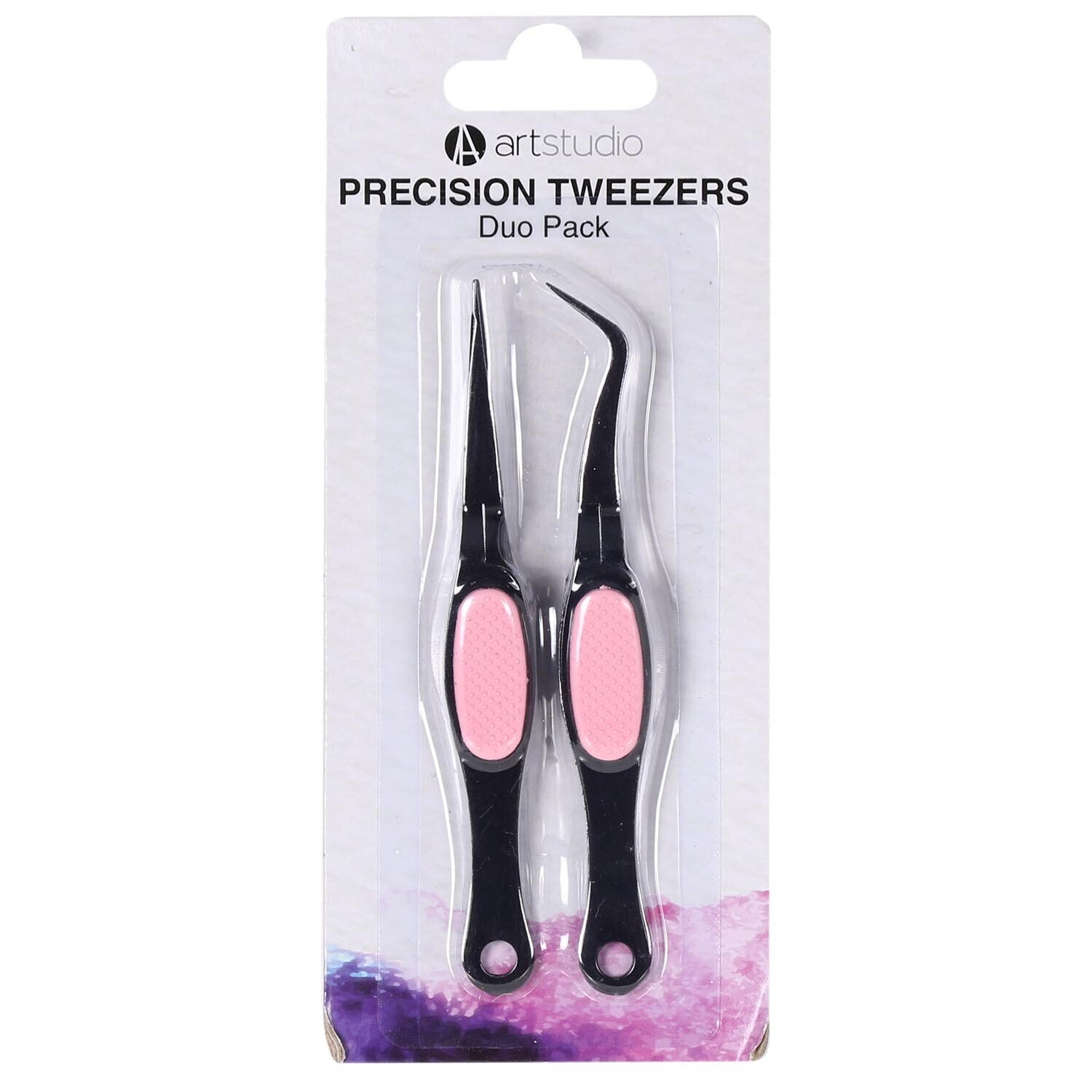 The Pack of Two Art Studio Precision Tweezers is a must-have essential for all crafters. Featuring soft-touch finger grips, these tweezers are perfect for working with small crafting materials, which can often be fiddly to work with or stick down.