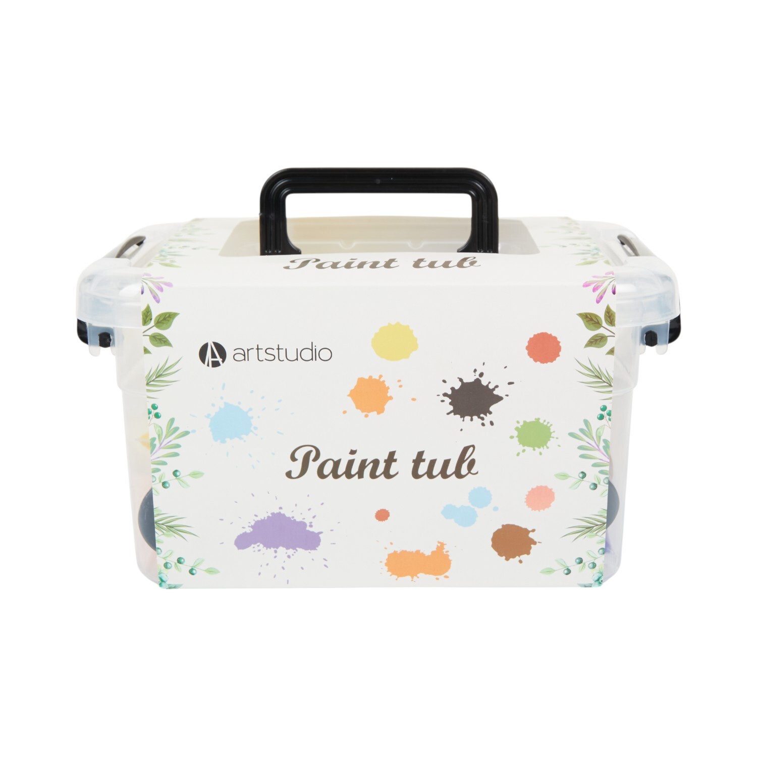 Make painting easy and mess-free with this handy Paint Tub. Designed to hold all your painting tools, it helps minimise waste and keeps colours organised during creative sessions. The tub features a secure lid to help prevent spills and keep your paints secure and organised. Packed with colourful paints, brushes, sponges, and more, it comes with everything you need to create your next masterpiece.
