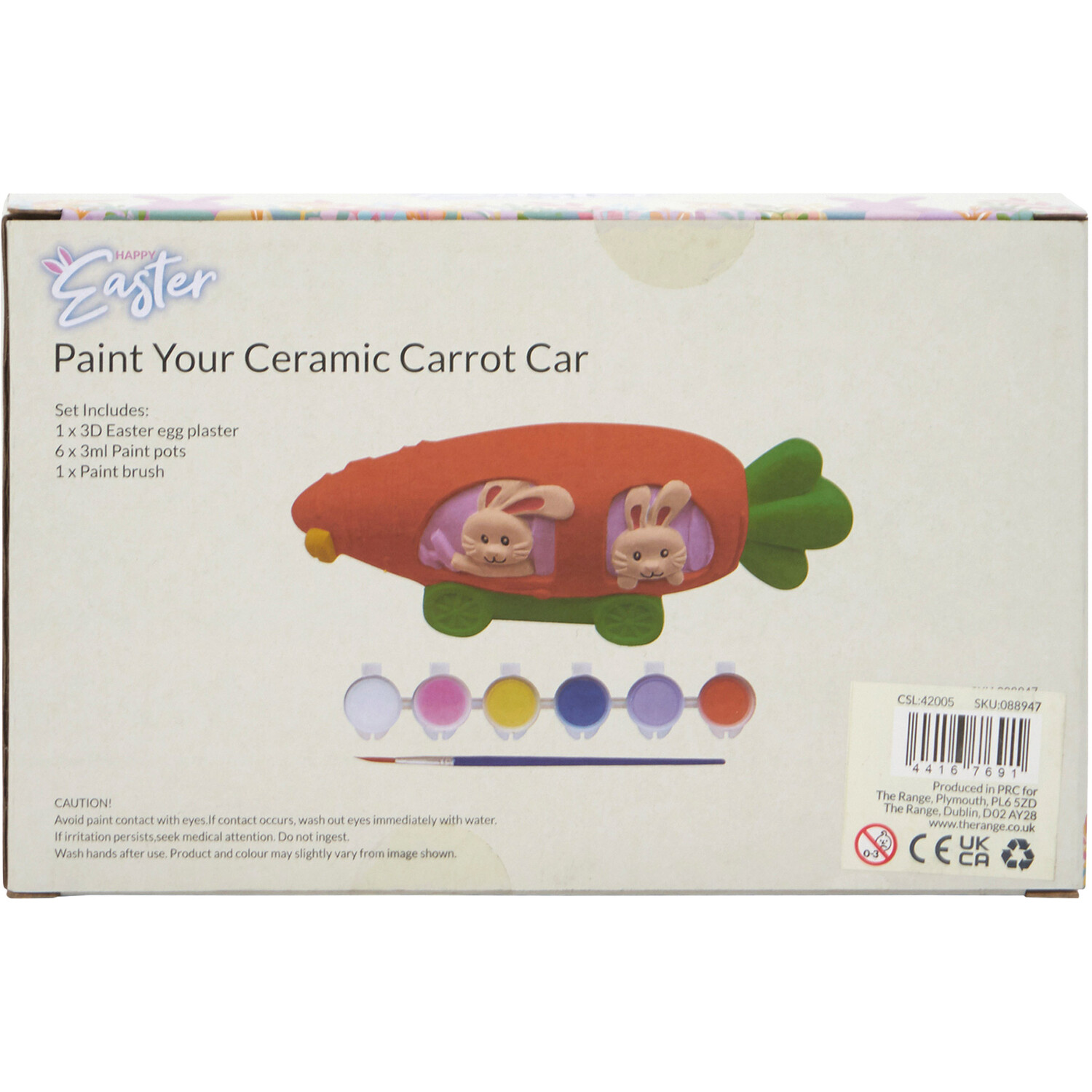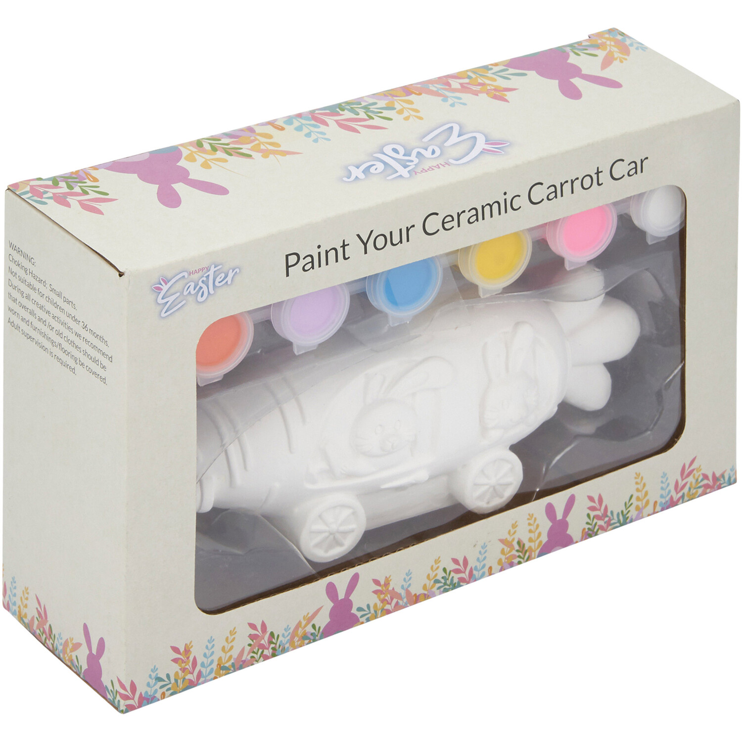 Create a unique seasonal decoration with this Paint Your Own Ceramic Carrot Car. With paints, a brush and a cute carrot car included, this set is sure to keep your kids creatively engaged this springtime and give you a great accessory to display.
