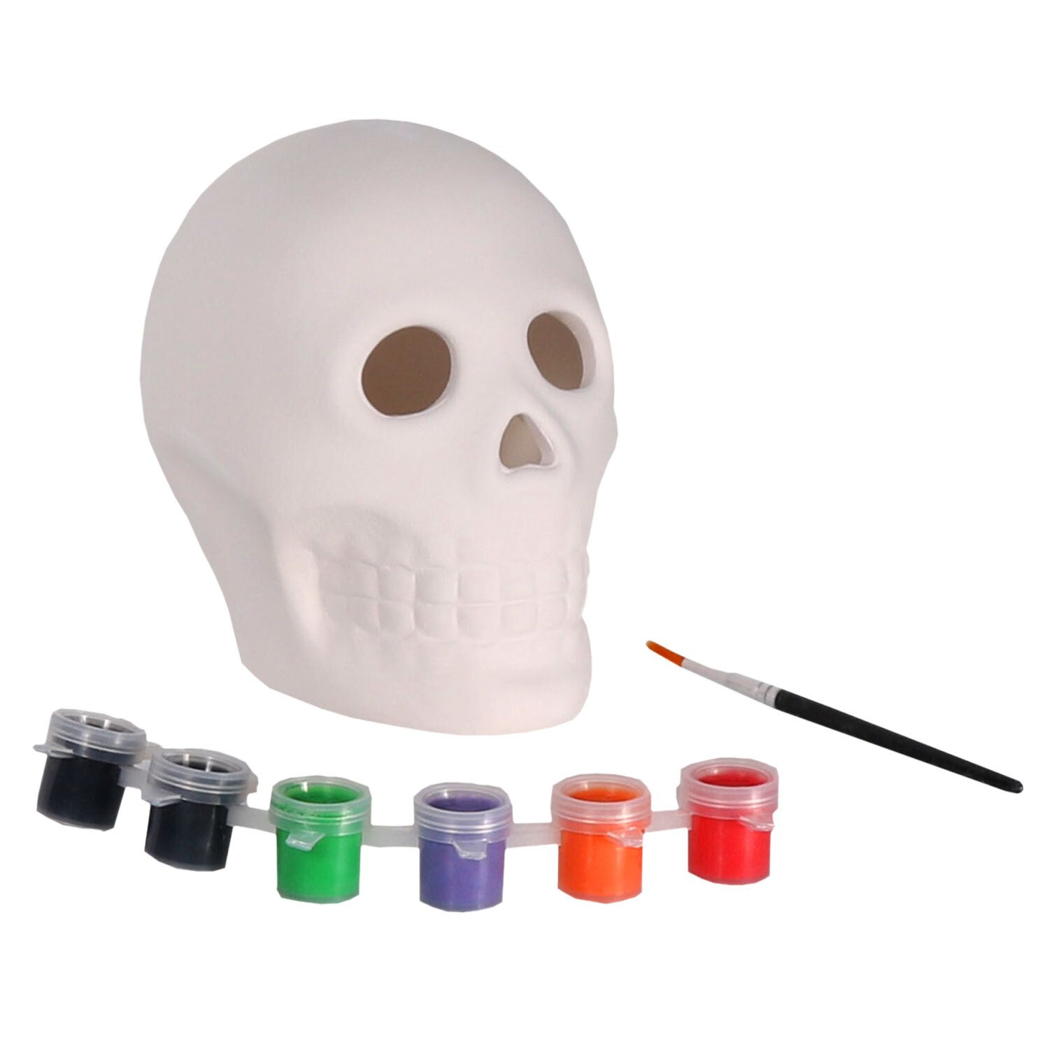 The Paint Your Own Halloween Ceramic Skull is a fun and creative activity that you and your kids will love doing this Halloween. This kit comes with six mini paint pots and a brush so you have everything you need to get going.