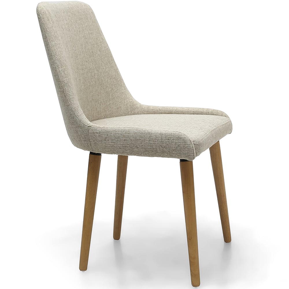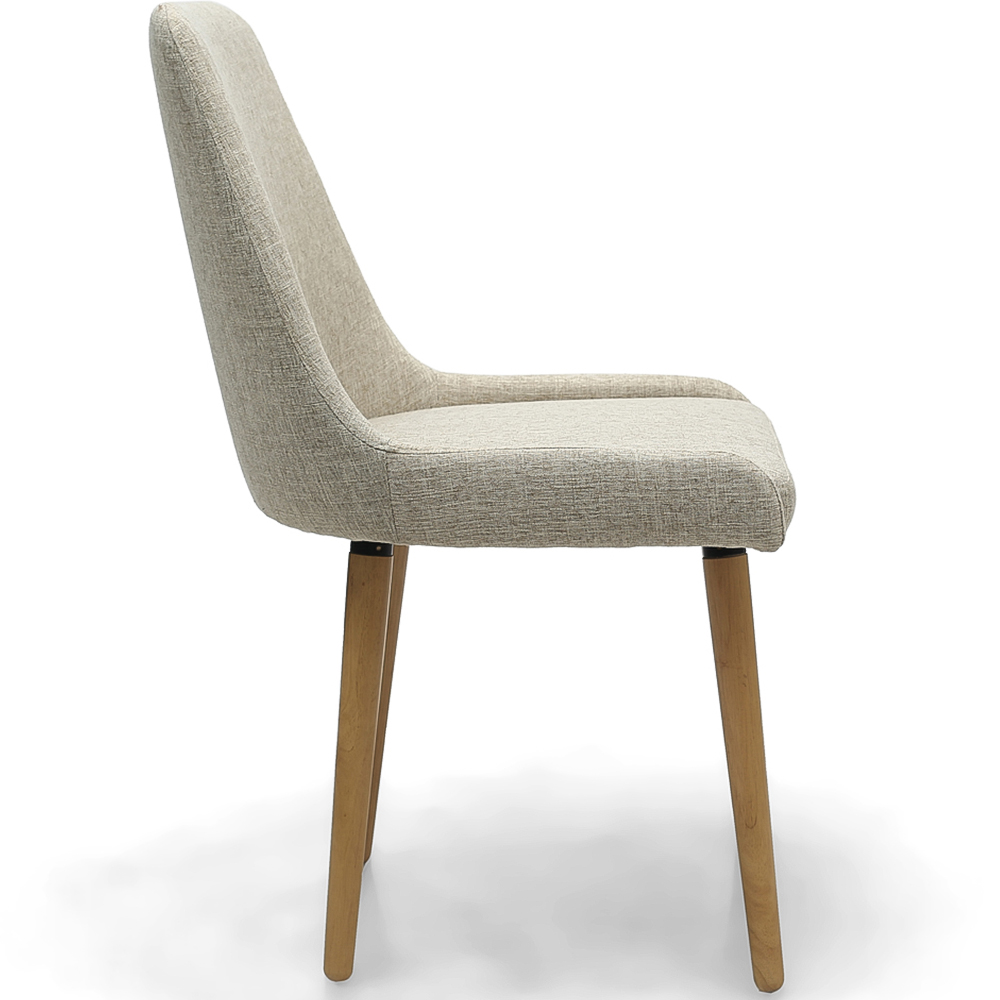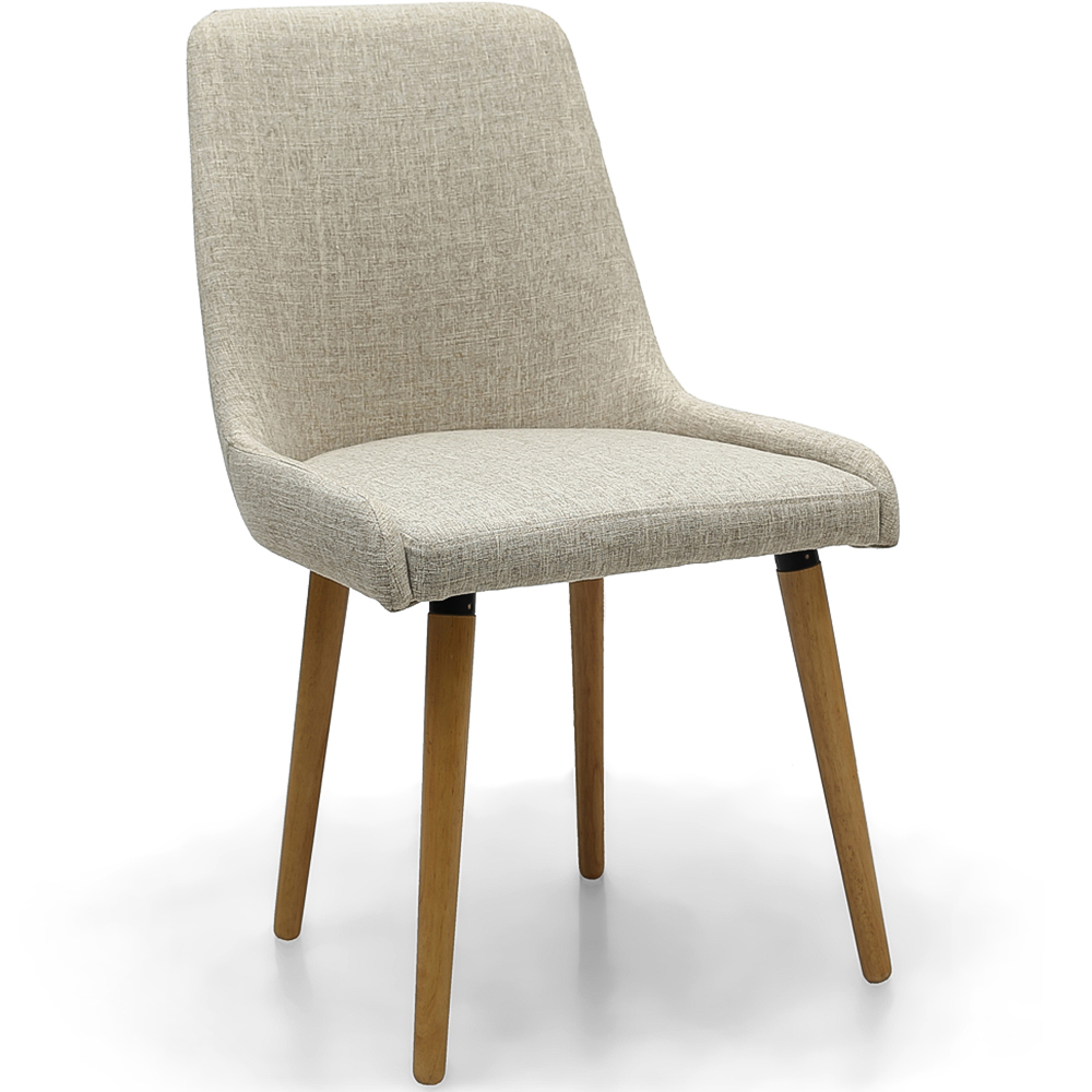 Style your dining room with this Set of Two Capri Natural Flax Effect Dining Chairs. These dining chair come with contemporary and minimalist styling that emphasises contemporary living. It also features an upholstered back in striking natural flax effect complemented by a sprung seat for added comfort. The chair has tapered natural rubberwood legs, which can offer your dining space an aesthetic look, and these legs are sold in boxes of two, which require assembly.