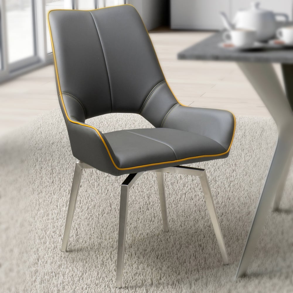 Mako Set of 2 Graphite Grey Swivel Leather Effect Dining Chair