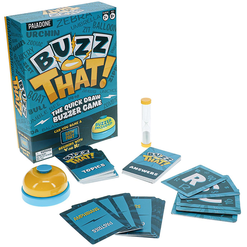 Take part in your very own TV game show at home with Buzz That! The think-fast game will have you buzzing in as many words as you can before the timer runs out. However, you can only buzz in words beginning with one of the letters in your hand of cards. Get rid of the most letter cards to be crowned the Buzz That champion!