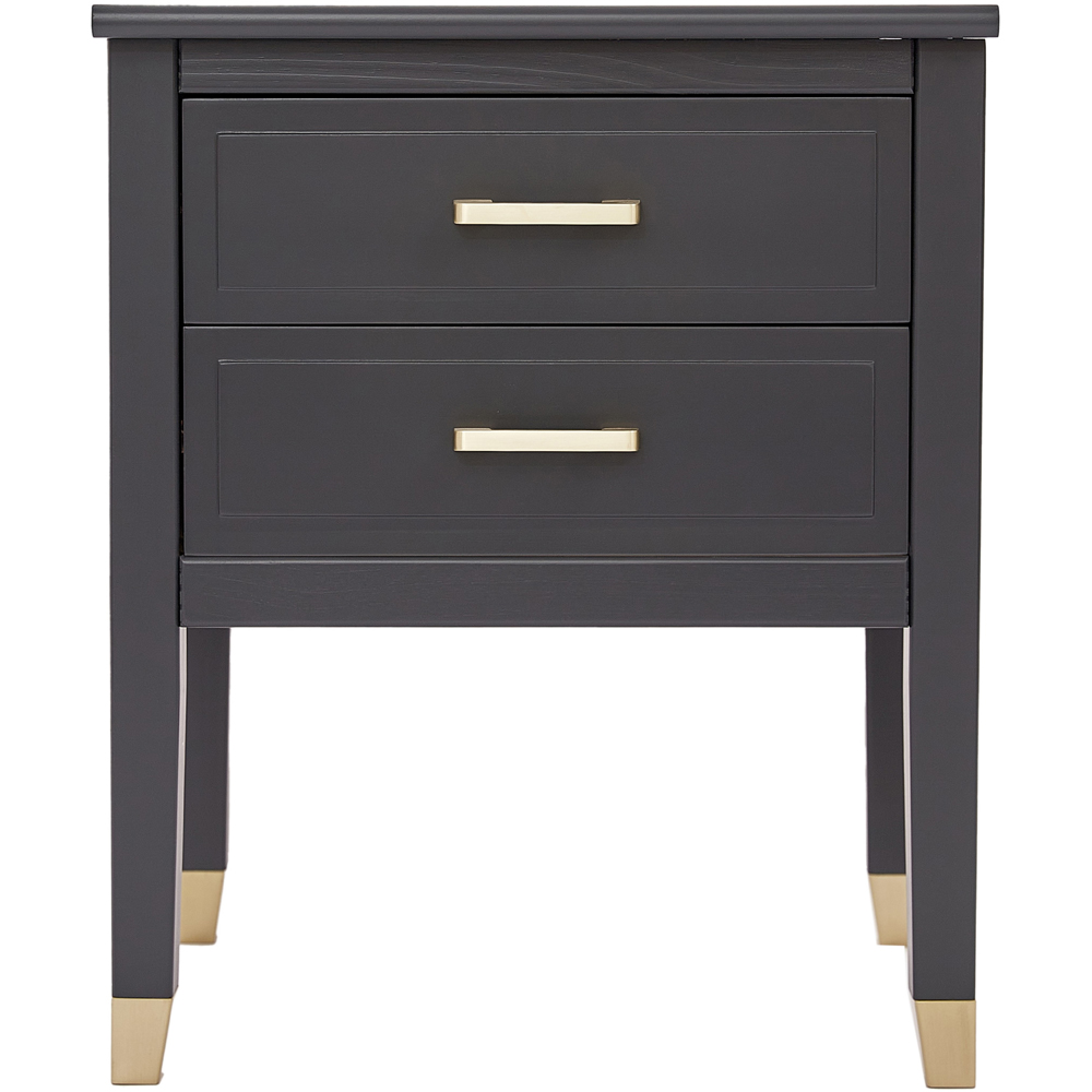 Add an elegant touch to your bedroom decor with this Palazzi Bedside Table. This dark grey-coloured table features a sophisticated design and has multiple finishes with gold accents, which gives this bedside table an outstanding look that can add character to any environment. The drawers present in the table are made with a combination of solid wood MDF for a sturdy build. It has two large-sized drawers completed with gold metal handles, which makes it very versatile, giving you plenty of space for your valuables. With its classy looks, this bedside table can be the perfect choice to add an eye-catching piece to your bedroom decor. The dimensions of the table are H61 x W50 x D40cm.