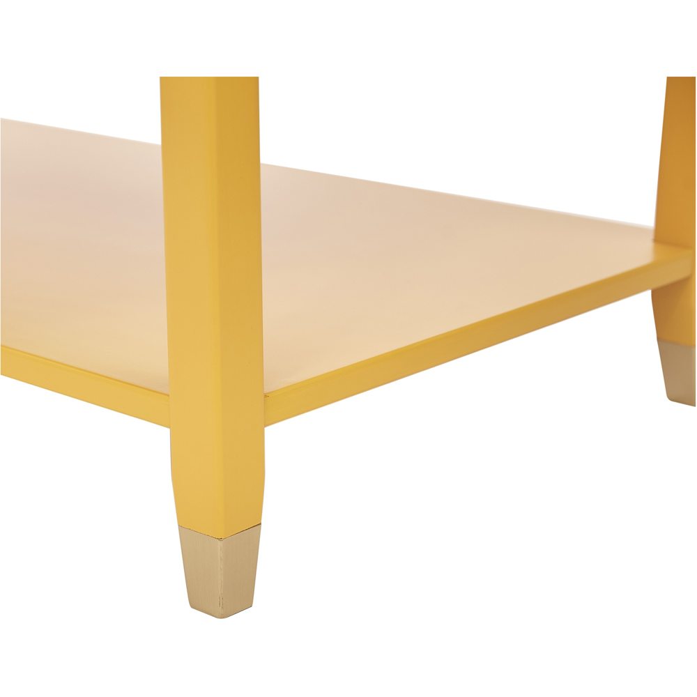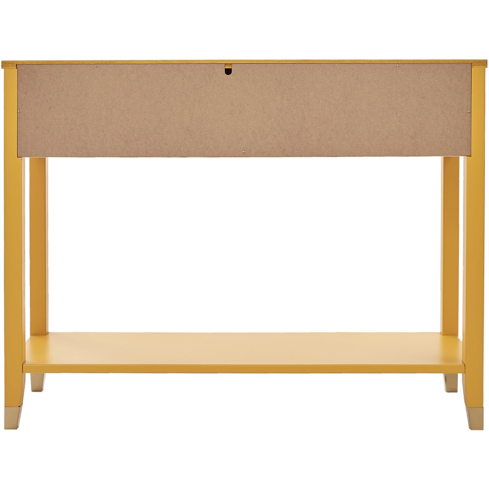 Upgrade your home decor with this Palazzi Console Table. This mustard-coloured console table features a sophisticated design and has multiple finishes with gold accents, which gives this table an outstanding look that can go with any interior. The table is made with solid wood MDF for a sturdy build. It has two drawers completed with gold metal handles and feet, making it versatile and giving you plenty of space for your daily essentials or decorations. With its matt finish, this table can be the perfect choice to add an elegant touch to your decor. The dimensions of the table are H80 x W105 x D35cm.
