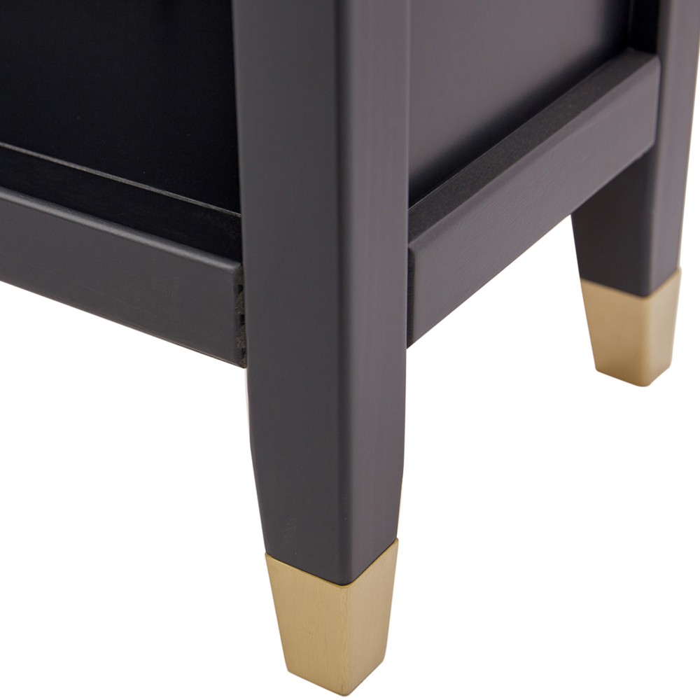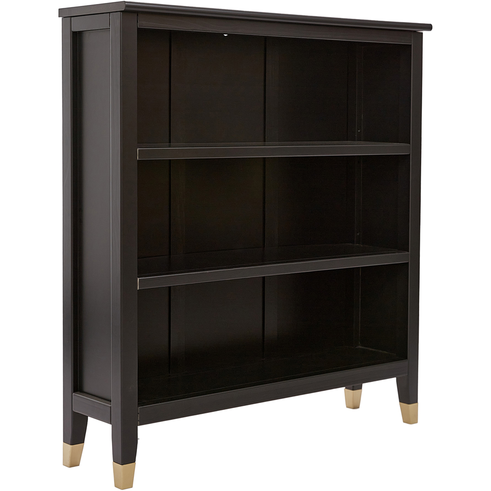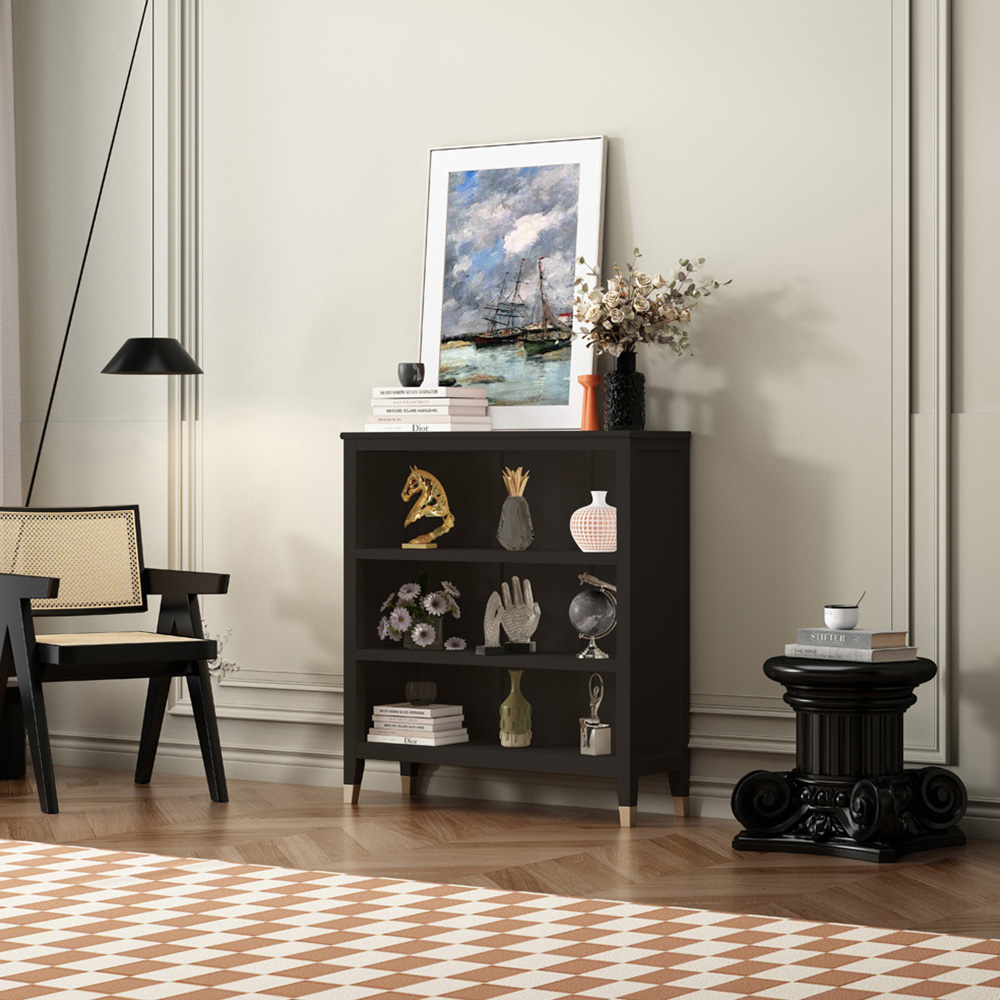 Store your books in a classy way with this Palazzi Bookcase. This black-coloured bookcase features a sophisticated design and has multiple finishes with gold accents, which gives this bookcase an outstanding look that can add character to any environment. The bookcase is made with solid wood MDF for a sturdy build. It has three shelves completed with gold metal feet, making it versatile and giving you plenty of space for your books or decorations. With its matt finish, this bookcase can be the perfect choice to add an elegant touch to your decor. The dimensions of the sideboard are H97 x W89 x D25cm.