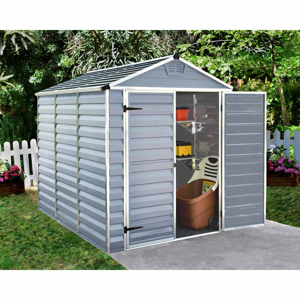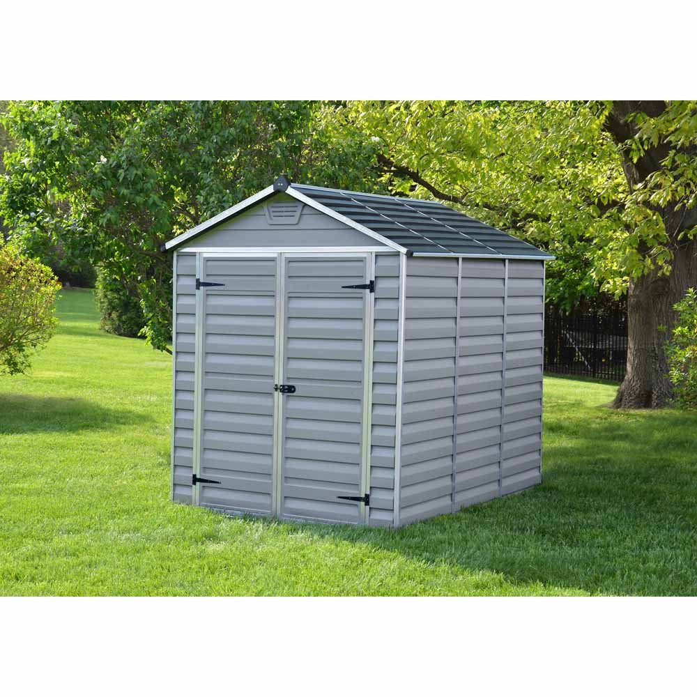 The SkyLight 6x8 Shed is perfect for storing organizing and protecting your outdoor life. Made with Palram's virtually unbreakable polycarbonate and reinforced aluminum frame, the SkyLight shed will provide years of maintenance-free protection. At first you may wonder about the flexibility and thickness of the polycarbonate panels, but rest assured that once assembled, the shed will be rigid and durable. The unique SkyLight polycarbonate roof panels transmit natural sunlight throughout the day while having an opaque external visibility for maximum privacy. Front and back vents are included for ample airflow.