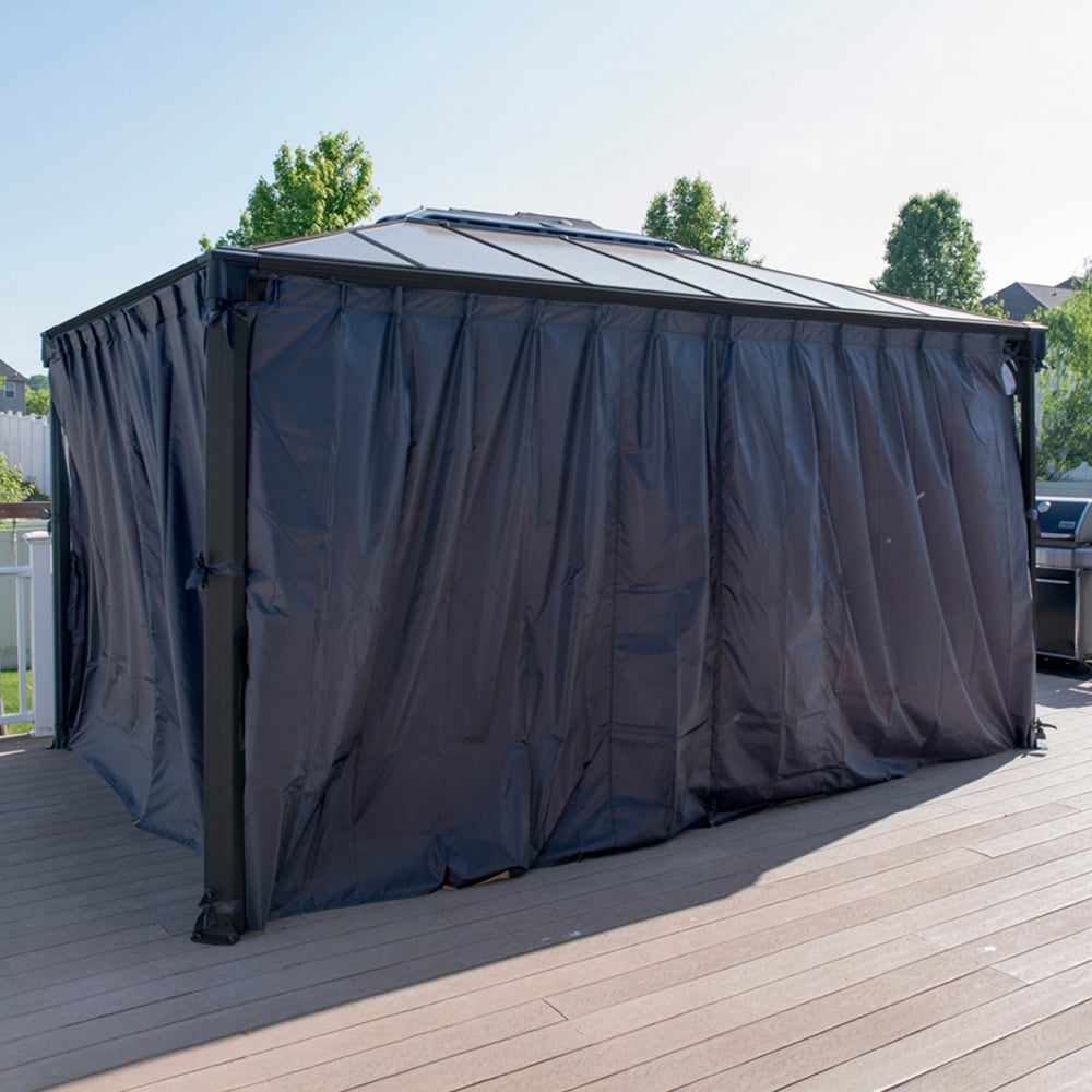 This Curtain Set is aesthetically appealing and functional, providing the privacy that is both sought after and cherished. Made of strong, lightweight polyester, the curtain comes with hooks that slide into the clips at the track line of the gazebo. The set features panels that zip together for total privacy, ensuring a waterproof and durable option for enhancing any outdoor space.