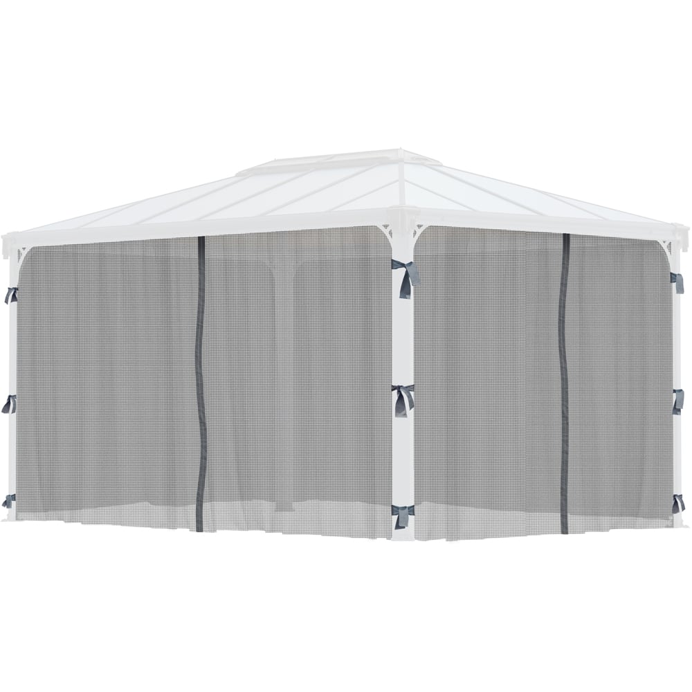The Garden Gazebo Netting Set is functional as well as aesthetically appealing. The set was designed to ensure compatibility with the Martinique gazebo structure and provide comfort by allowing airflow yet keeping out unwanted bugs. The Netting set comes with hooks that slide into the clips at the track line of your Martinique Gazebo Canopy. This set contains four screens to cover your entire gazebo, easy to install and easy to use. The set includes zippers to connect the screens together and ties to secure them to the corner posts. No maintenance is required, they can simply be machine washed.