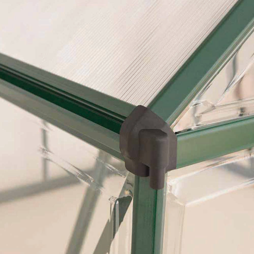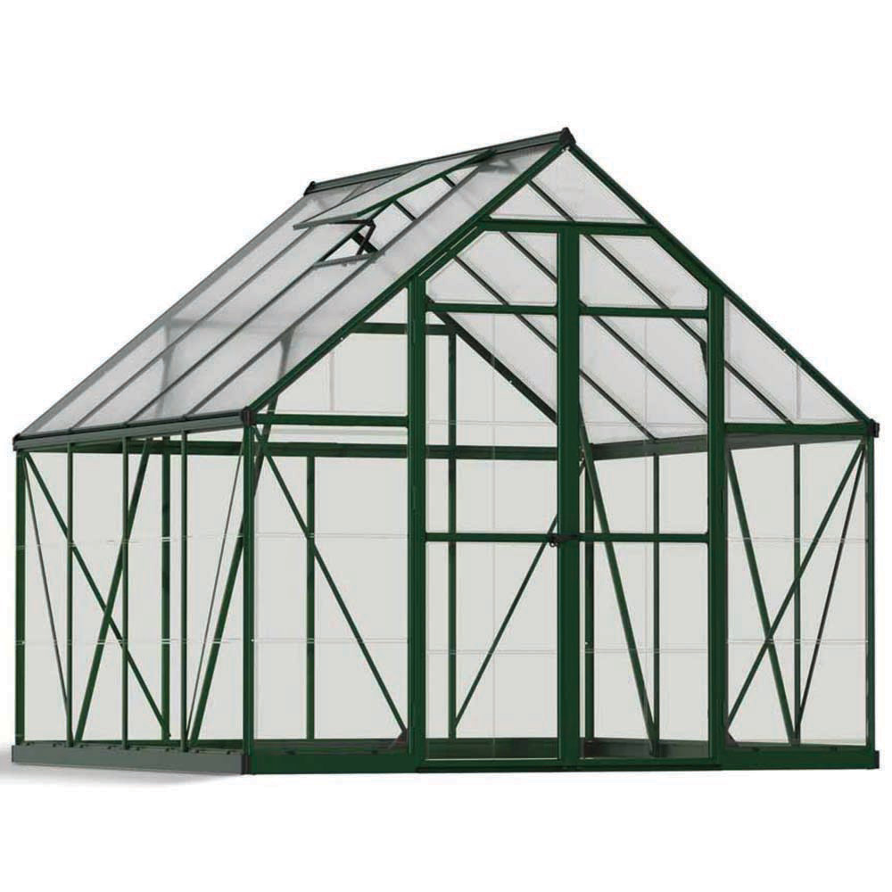 Provide your plants with ideal conditions for nurture and growth with the 100% UV protected Balance Greenhouse in green. It’s attractive, strongly built and features two virtually unbreakable polycarbonate glazing types for sunlight transition optimization - diffuses over 70% of the harsh sunlight for even soft light. The combination of the safe polycarbonate with the reinforced, rust-resistant aluminium frame provides you with a well-designed and durable greenhouse. Enjoy gardening for many years, cultivate your own organic fruits, veggies and herbs in a well-balanced environment. Size: 8 x 8ft.