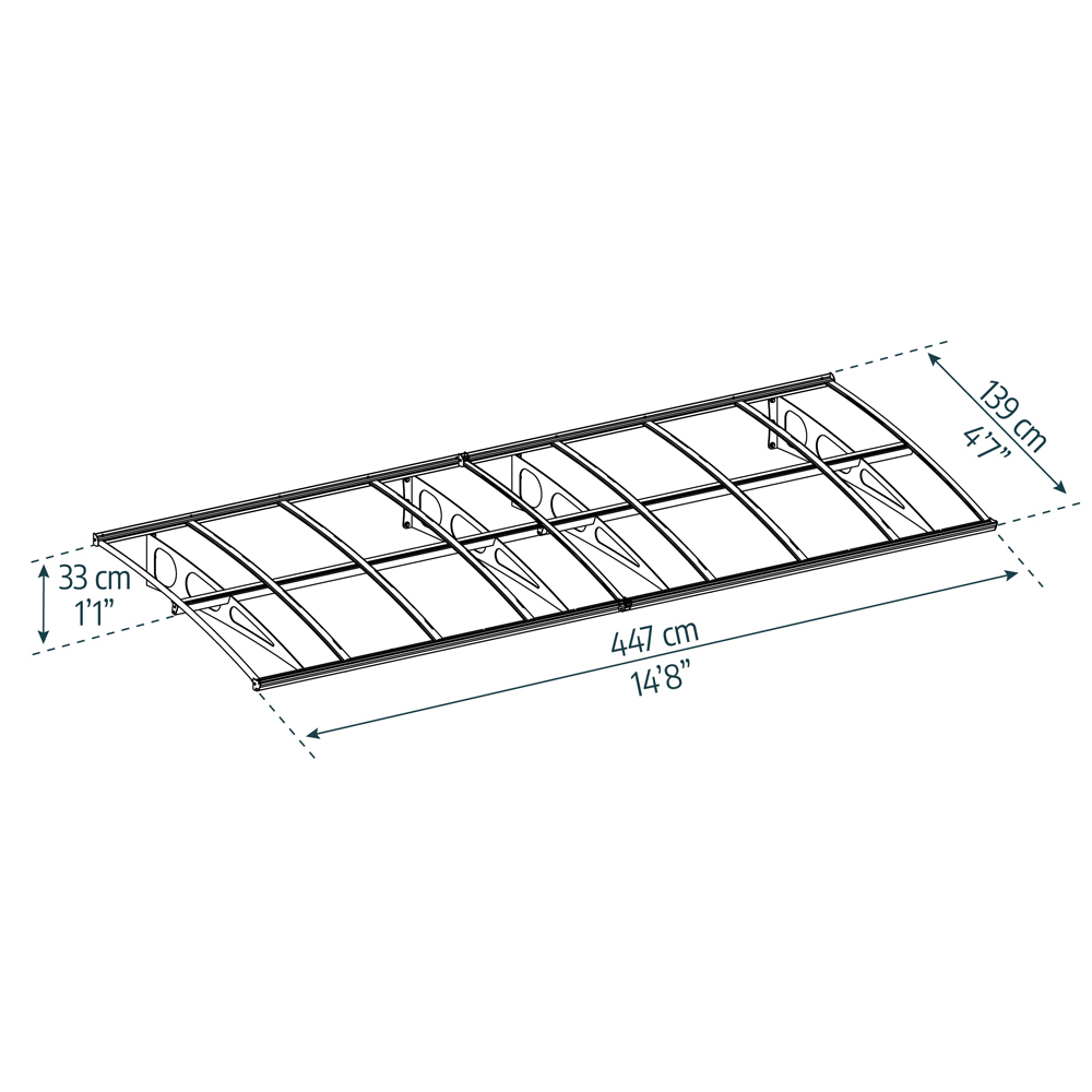 Introduce a touch of class to your home with the Palram Canopia Bordeaux 4460 White Clear Door Canopy. This elegantly crafted awning not only shields your entrance from the elements but also acts as a stunning architectural feature. With powder-coated, galvanised steel support arms and an efficient aluminium front gutter, it's engineered for durability and style. The high-impact, 100% UV-resistant solid panels enhance both aesthetics and protection, making it an eco-friendly asset. Add real value to your home while enjoying effortless assembly with the user-friendly DIY kit. Dimensions: 4.5 x 1.4m.