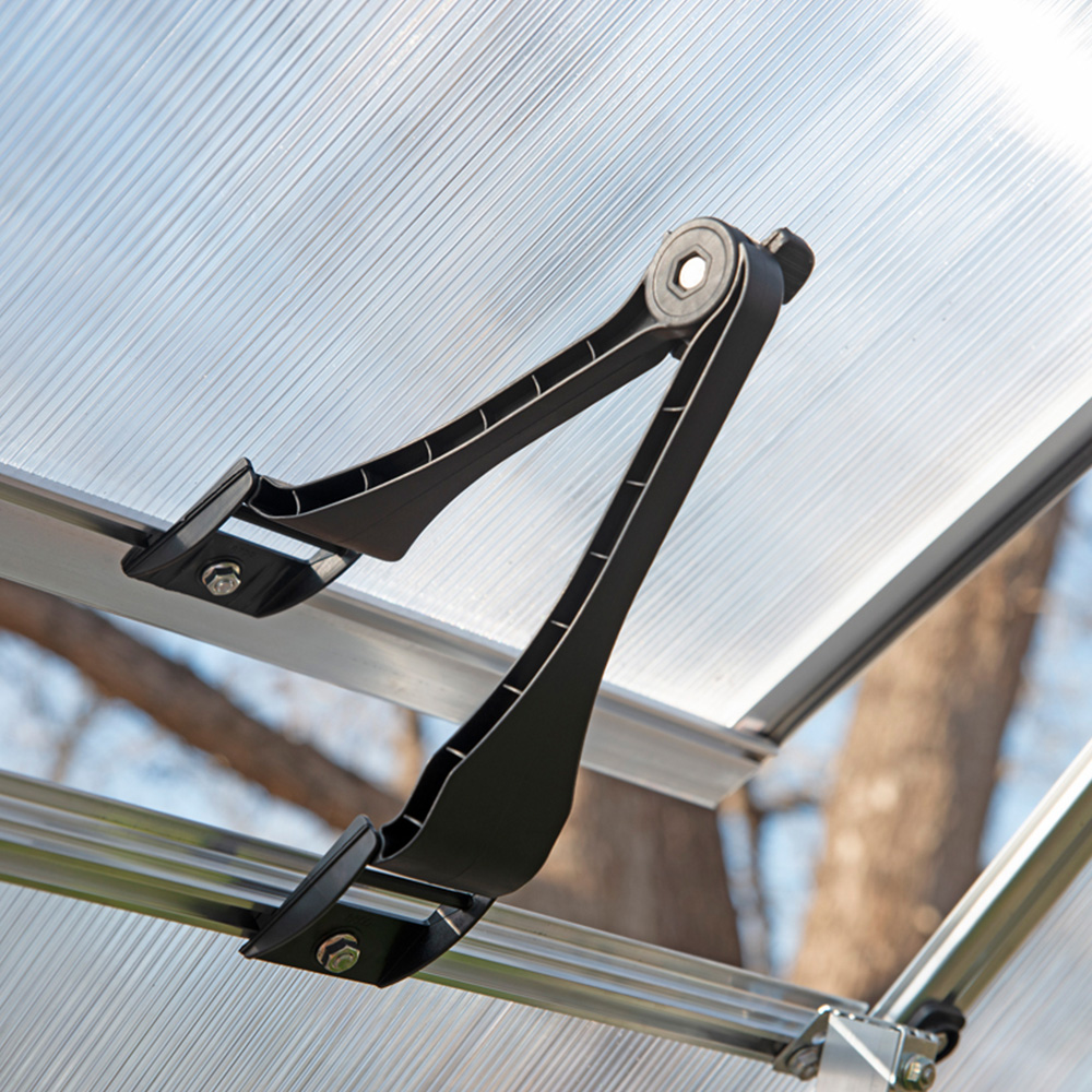 The Essence greenhouse kit makes it easy to regulate the temperature, humidity and airflow of your DIY greenhouse with two manually adjustable vent windows and makes it effortless to go in and out with arms full of trays or pushing a wheelbarrow with two wide doors and a low threshold. The essential greenhouse also includes a galvanized steel base and a built-in gutter system. Your plants will enjoy a nurturing environment, while you get to enjoy all the space to make it happen with an Essence Greenhouse.