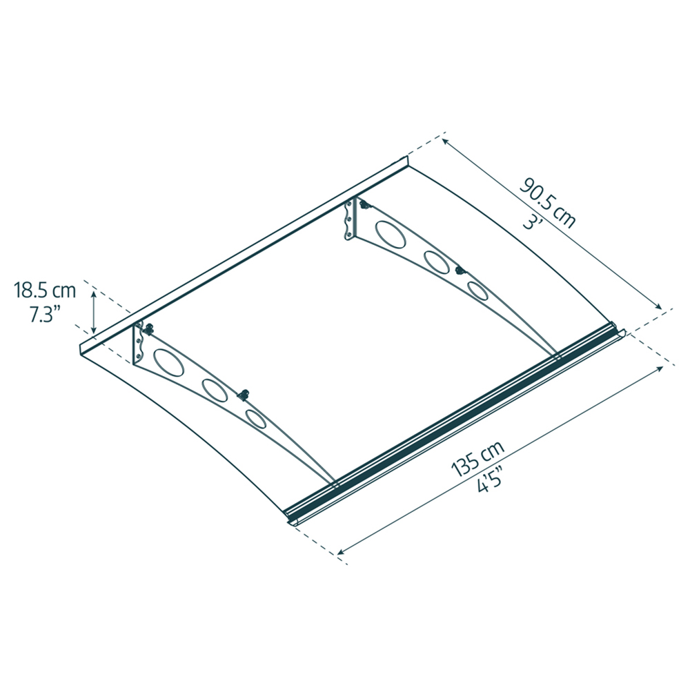 Make a bold statement with the Palram Canopia Garamond 1350 Grey Clear Door Canopy. Thoughtfully designed to direct rain and snow away, its front gutter ensures your entrance remains accessible and inviting. This eco-friendly DIY door canopy adds value and style to your property, constructed from durable materials to stand the test of time. With an innovative locking system for easy assembly, you'll appreciate the blend of functionality and modern design. Boasting ultra-safe 3mm solid panels, your home will benefit from both beauty and resilience. Dimensions: 1.4 x 0.9m.