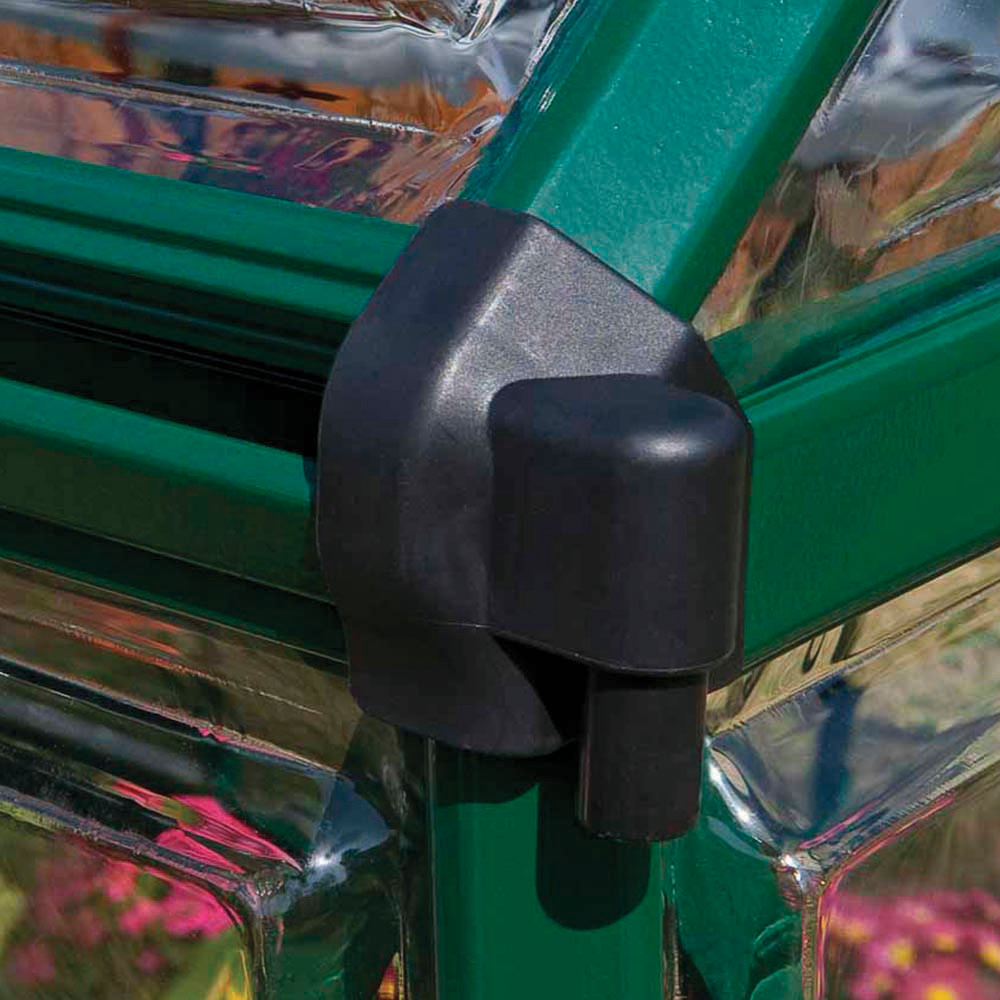 Enjoy greenhouse gardening with the Harmony greenhouse in green, fill your spring and summer gardens with your own organic fruits and vegetables and hundreds of mature colourful annuals that you've grown from seeds in your private greenhouse. This wonderful greenhouse includes a perimeter, rust resistant galvanised steel base, powder-coated, corrosion-resistant aluminium frame for long-lasting durability. It’s made of crystal-clear, virtually unbreakable polycarbonate panels that provide over 90% light transmission yet block harmful 100% UV rays. These panels are simple to slide and lock into position and have a rust-resistant powder coated green aluminium frame. The greenhouse’s vent window helps maintain the desired temperature and humidity levels and provides ventilation. With its sleek and smooth design, the finished result is beautiful, functional, sturdy, and built to last. Size: 6 x 12ft.