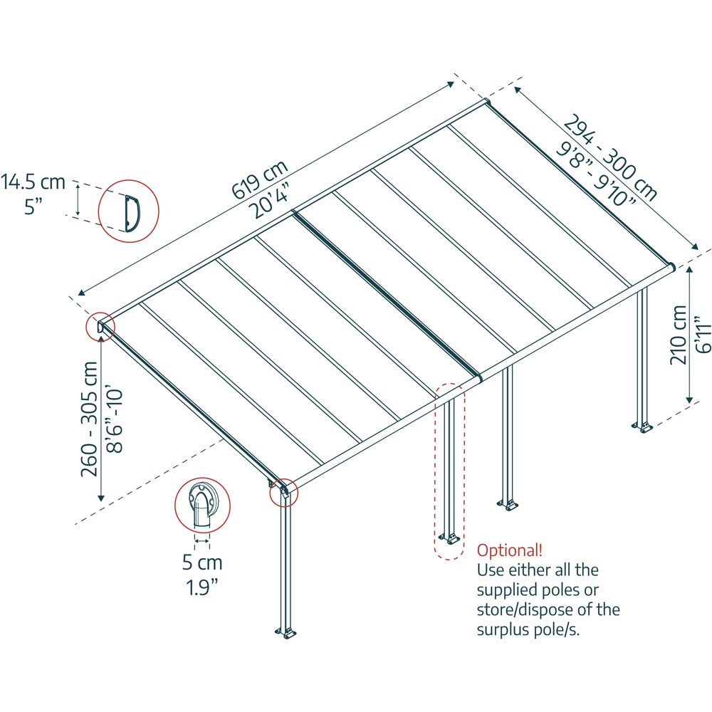 The Olympia Patio Cover was crafted with your comfort in mind, entertain, celebrate special family events or simply relax in your outdoor spa. It provides you with an ideal setting to enjoy your garden and de-stress at the end of the day. The Olympia is robust, sturdy and durable, comprised of heavy-duty, powder-coated corrosion resistant aluminium structure and virtually unbreakable, 100% UV protected, light diffusing multi-wall polycarbonate roof panels.