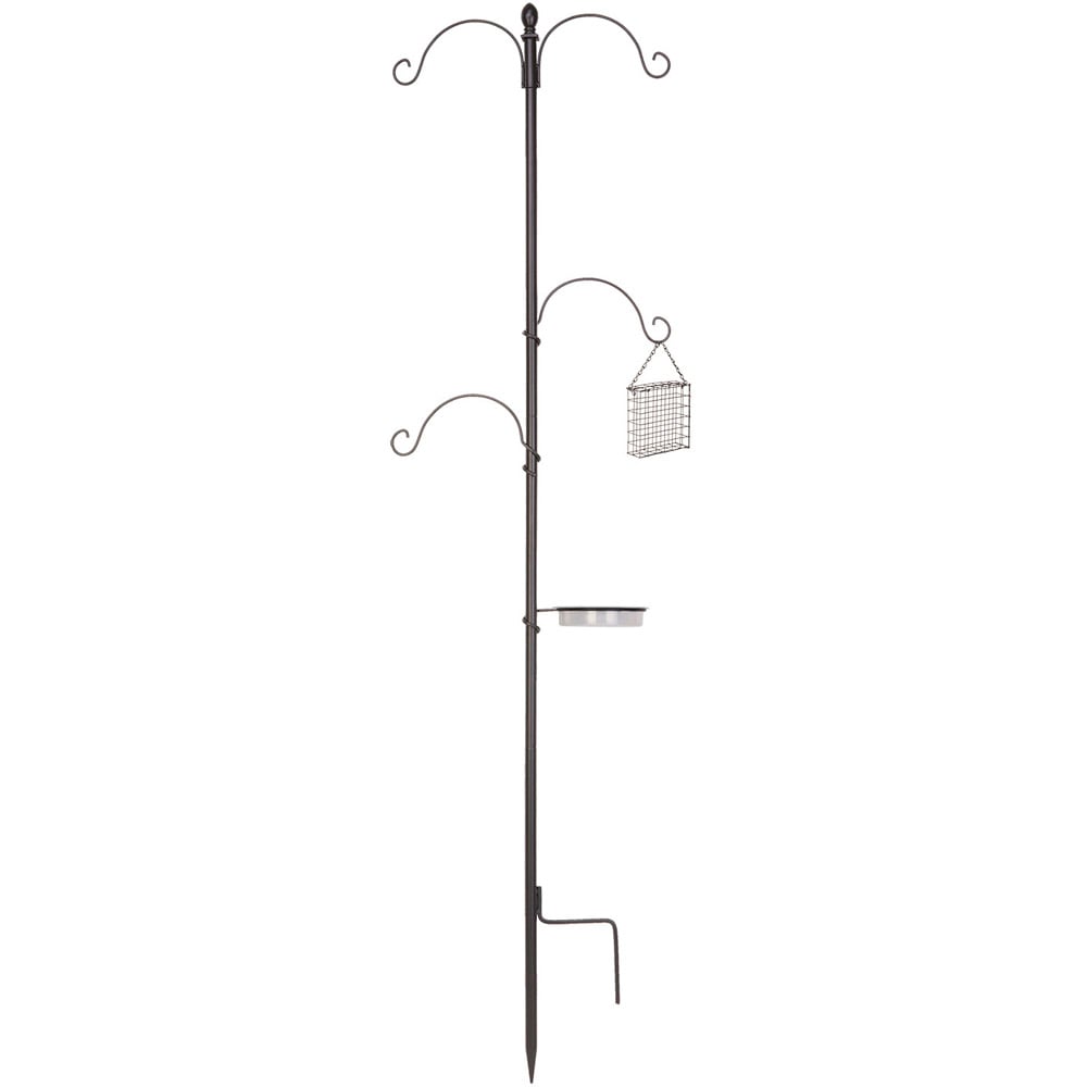Feed birds around your home with the Panacea Essential Steel Bird Feeding Station. Made with two top hangers, one smaller feeder hook, a hanger with a suet cage and a bird bath dish, this station is made with everything wild birds need to be happy and healthy. It's made from durable steel. Simply stick this into the ground and watch the birds flock to it.