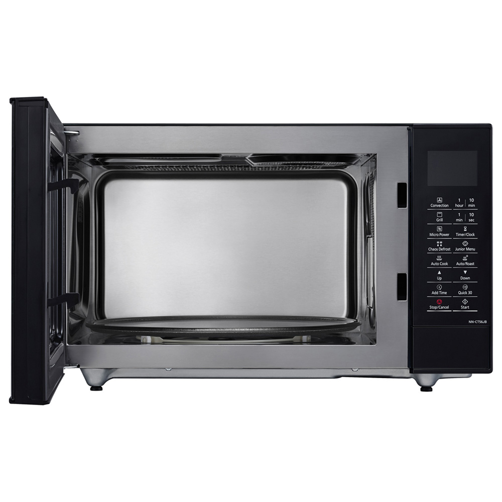 The Panasonic Black 27L Combination Inverter Microwave Oven is an ideal addition to any home kitchen or office breakroom. This device offers you a variety of cooking options to suit your every need. Simply select between 29 auto programmes, 6 power levels, or 3 grill power levels for simple cooking. Whether you use it as a microwave, an oven, or a grill, this impressive unit allows you to prepare your meal with convenience. Apart from this, boasting a 1000-watt inverter microwave and a 1300-watt quartz grill function, this powerful device can handle a range of meals and deliver perfect results in no time at all. Model: NN-CT56JBBPQ. Size: 27L.