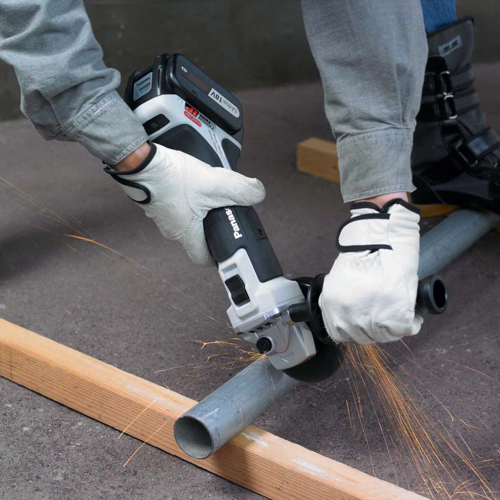The Panasonic EY46A2X 125mm Grinder is capable of performing a wide range of cutting and grinding tasks. It is a powerful, compact and efficient machine with Tough Tool IP dust and splash protection for increased durability. There is a spindle lock, for quick and easy changing of the disc. The grinder will not start when the battery pack is inserted with the switch in the ON position. Instead, a warning lamp flashes to alert you to the switch’s position. This helps to prevent you from accidentally starting the machine when you are unprepared.