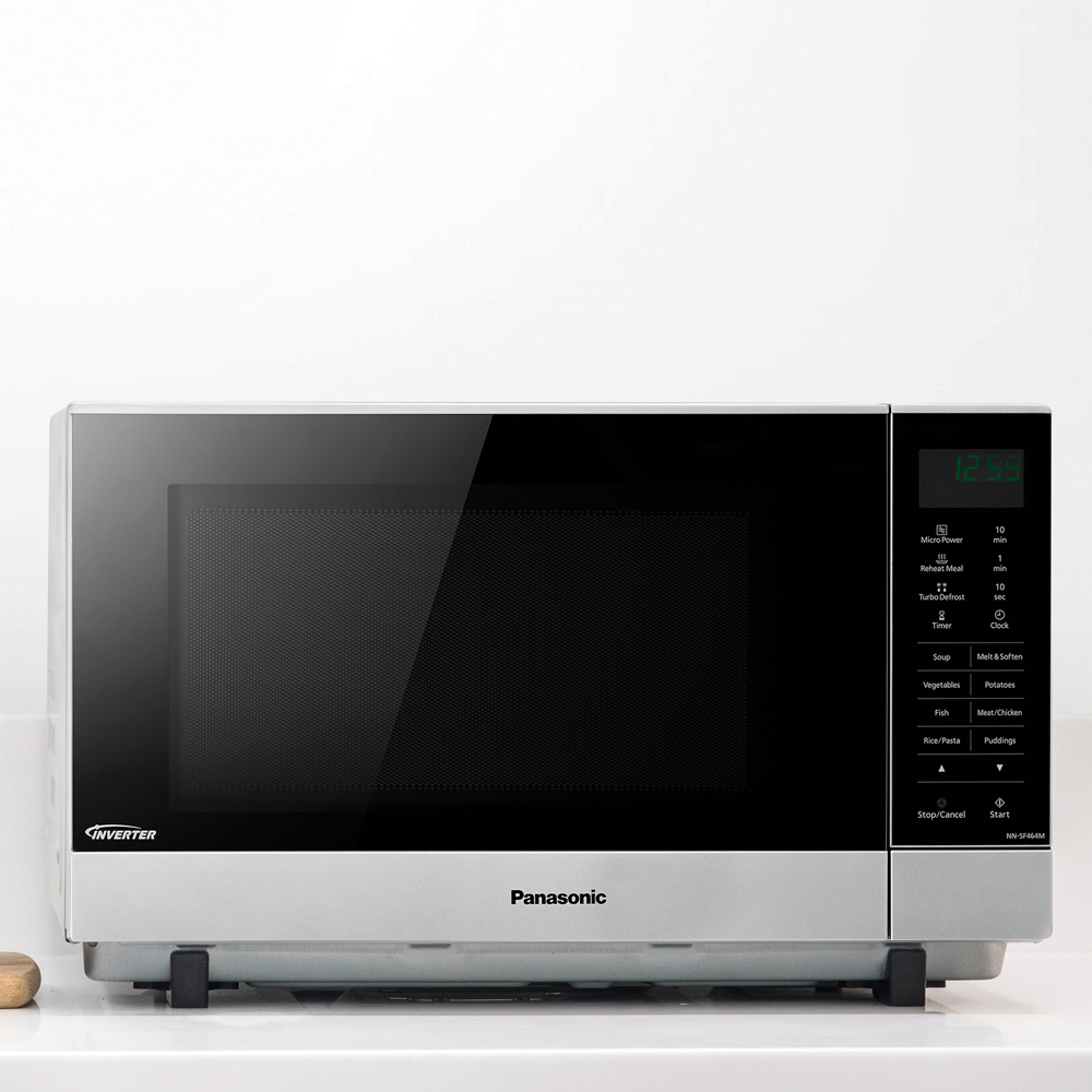 Enjoy cooking with this Panasonic Black Flatbed Microwave Oven with Inverter Technology. With a 27L capacity, this device is perfect for small families. This device boasts a stylish, clear and linear silver design to make a stunning addition to your kitchen countertops. Also, it comes in a frameless design with an integrated door opening button, mirror effect door and touch control operation. Plus, thanks to the innovative Flatbed cavity design, gives you a cooking area that is 31% bigger than a conventional turntable model.