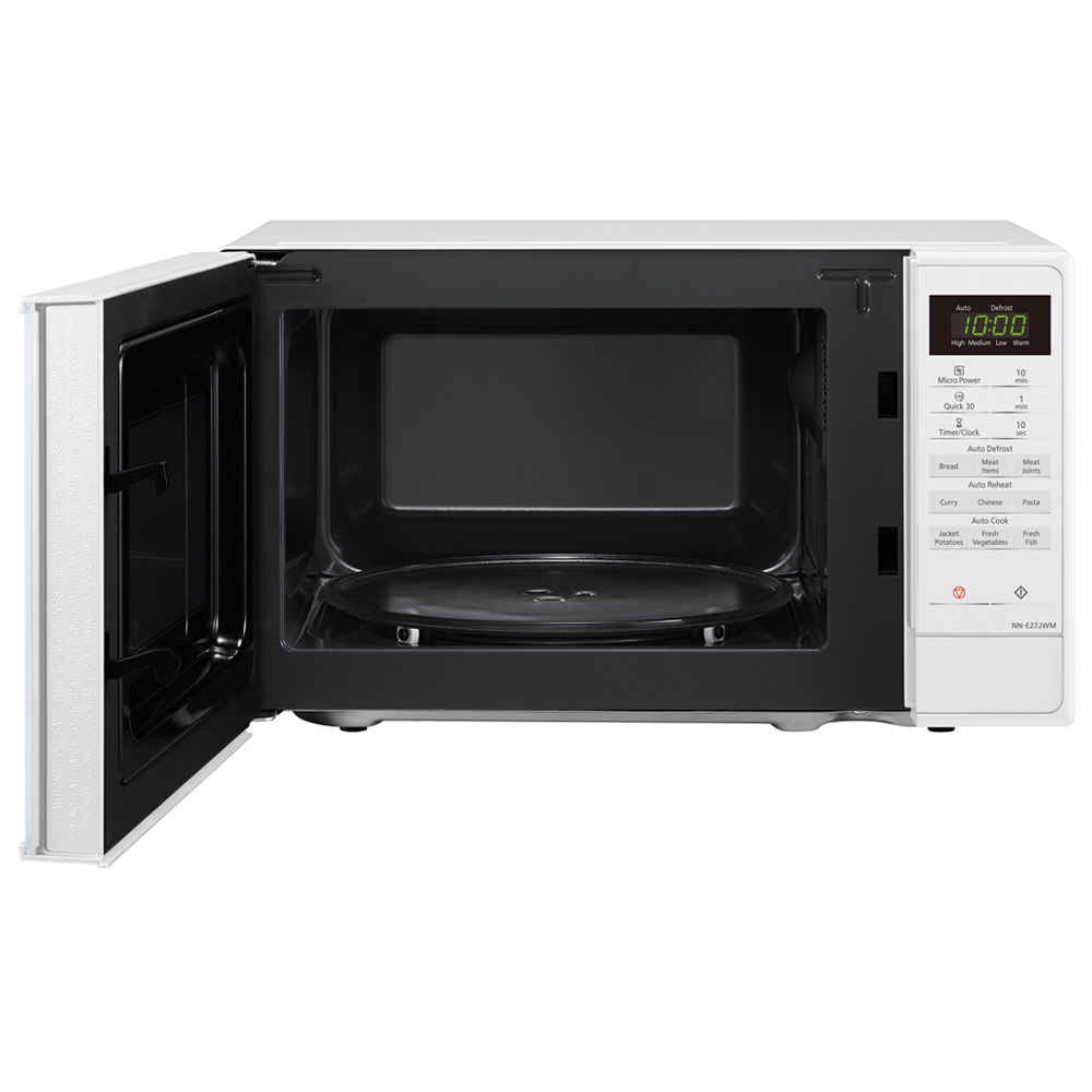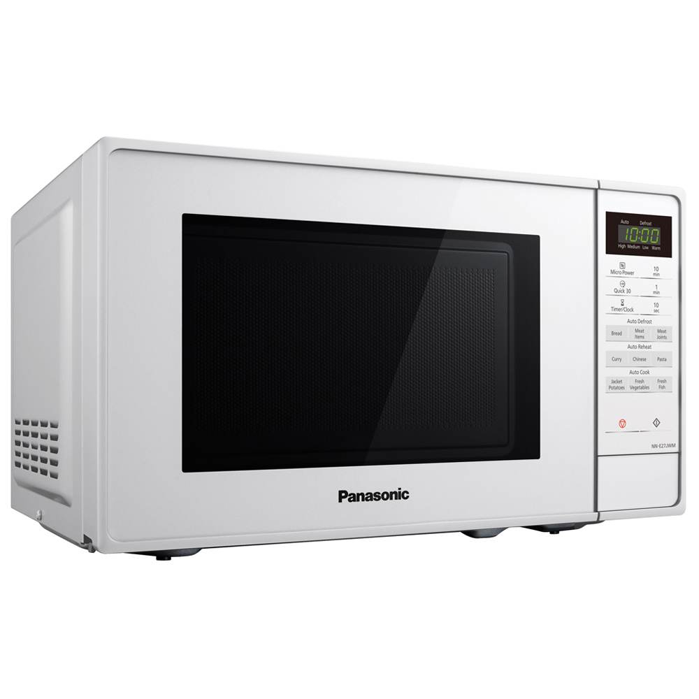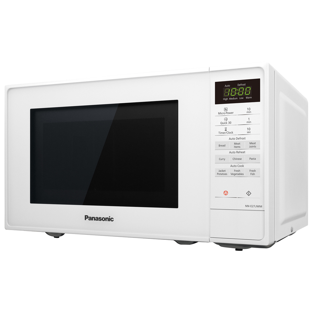 Make cooking easy and efficient with this Panasonic White 20L Microwave Oven. With an impressive 800W of microwaving power, this device allows you to enjoy all your favourite meals in no time. Also, the microwave oven has a touch control panel with a child lock, quick 30-second settings, and a push door opening for added convenience. Easy to operate, simply choose the right cooking method for your meal by selecting one of the five available power settings. Also, for efficient cooking, it comes with a range of handy, flexible settings, including 9 auto programmes for quick defrosting and cooking foods like jacket potatoes, chicken, vegetables, and more. Model: NN-E27JWMBPQ. Size: 20L.