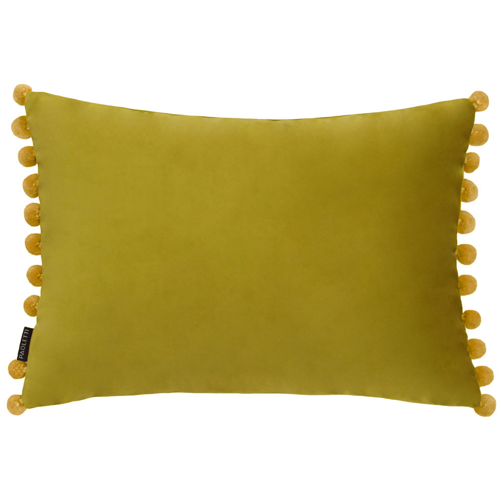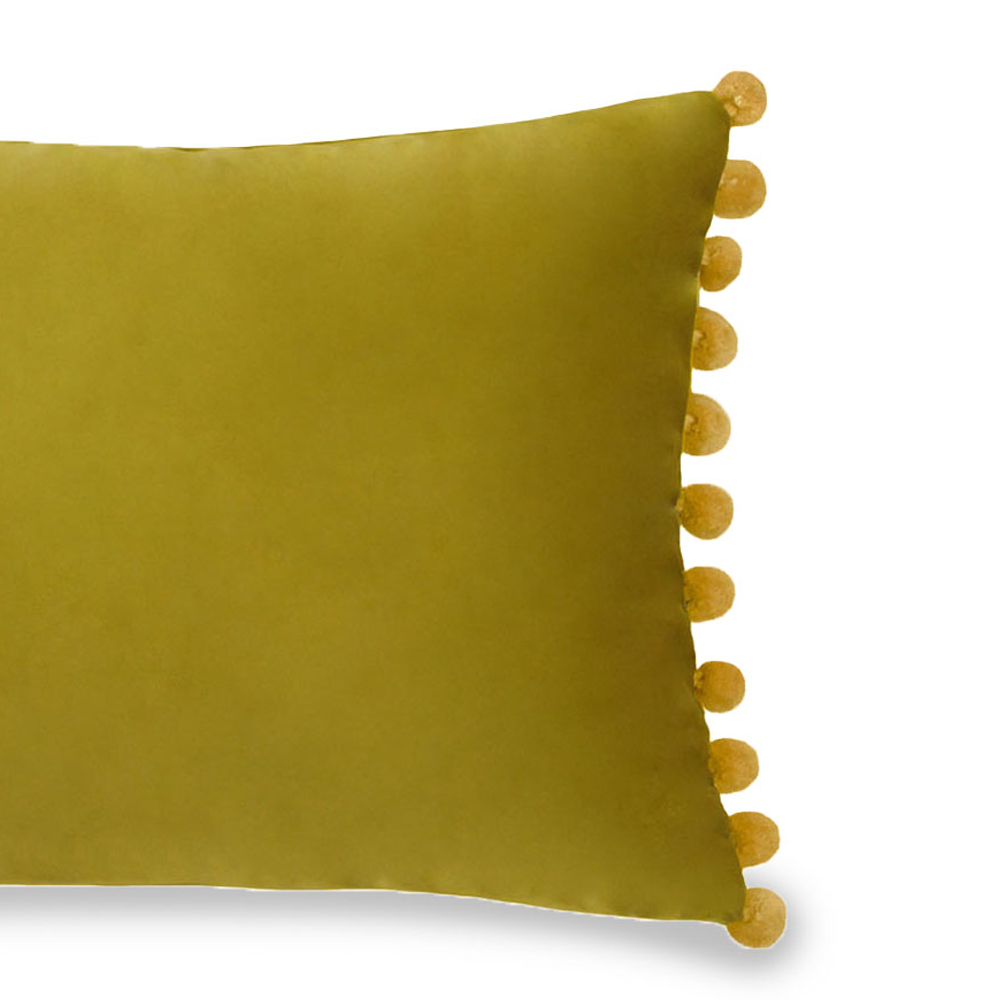 Give a touch of style and elegance to your bed or sofa with the Paoletti Fiesta Bamboo Gold Pom Pom Velvet Cushion. The Fiesta cushion, aptly named after the Spanish word for festival, is a plethora of bright colours and mixed tones. The velvet body of the cushion is an absolute delight to touch thanks to its sublimely soft texture, which catches the light from every angle. Contrasting coloured pom poms feature along the edges to further enhance the fun and tactile nature of the cushion. With a hidden zip closure, nothing takes away from this cushion's unique design. While this cushion cover is not machine washable due to its gorgeous pom poms, it is iron-appropriate.