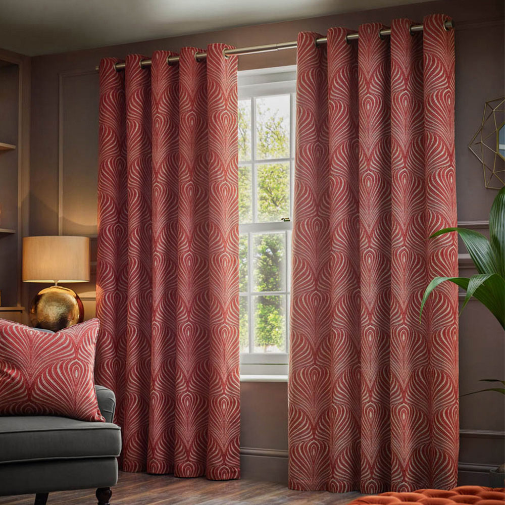 Paoletti Gatsby Terracotta Jacquard Eyelet Curtain 229 x 137cm