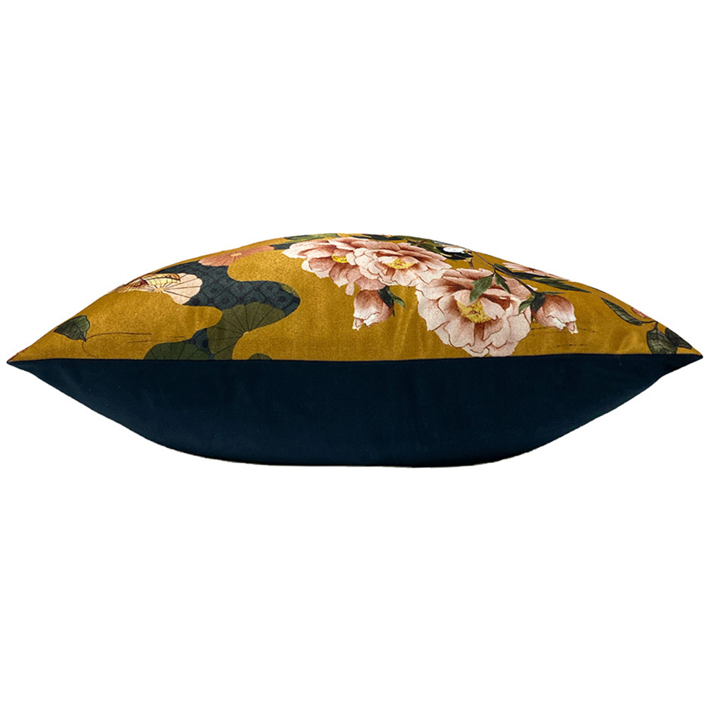 The Paoletti Geisha Ochre Floral Cushion showcases the elegant allure of the Geisha woman, as she finds herself surrounded by the serene beauty of traditional Japanese gardens. This cushion perfectly complements the Geisha Wallpaper, creating a harmonious and captivating aesthetic. Additionally, it offers a luxurious touch with its soft velvet reverse, ensuring both comfort and style.