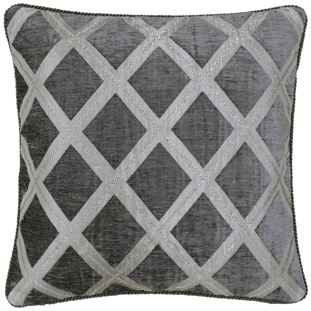 The Paoletti Hermes graphite cushion cover is made from a luxurious chenille style fabric, giving it a sense of opulence. Its metallic design adds to its elegance. The cushion features a geometric diamond pattern on both the front and back, combining traditional aesthetics with a modern touch. A soutache braid runs along the edges, providing a perfect border. The cushion cover also includes a hidden zip closure, ensuring that the cushion pad stays securely in place. It is resistant to stains and is suitable for households with children or pets. For maintenance, it is recommended to dry clean only. Additionally, it can be ironed on a cool setting and should be laid flat to dry. This cushion is not only stylish but also incredibly comfortable and long-lasting.
