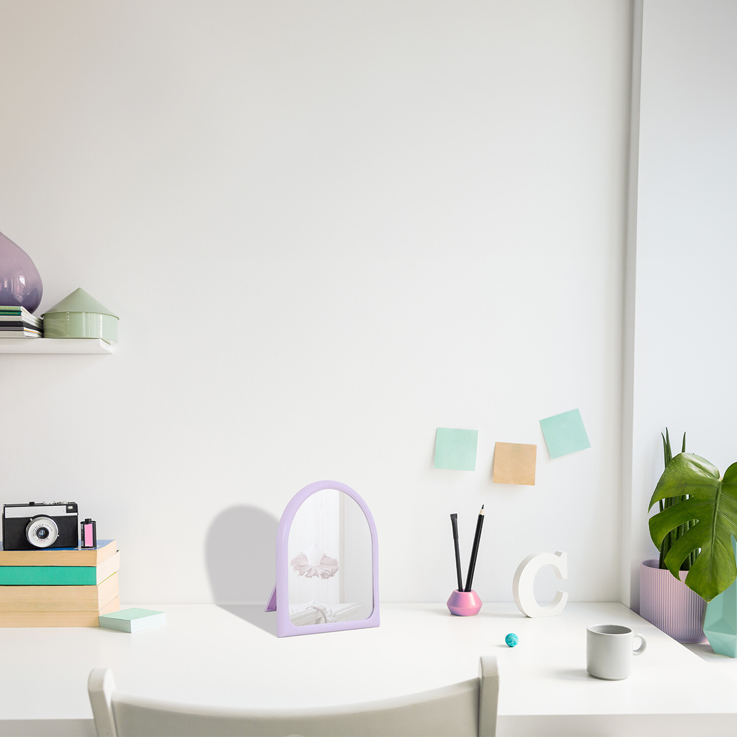 Enhance your home decor with the Pastel Arch Standing Mirror. Available in a delightful assortment of yellow and purple, this stylish mirror features a charming curved design and a convenient stand. It's perfect for displaying on your sideboard or dressing table to help you prepare for the day in style.