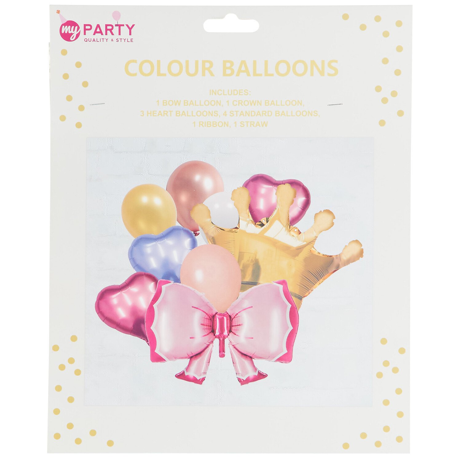 Elevate your birthday parties with the Pastel Party Princess Balloons. This set includes one bow, one crown, three hearts, and four standard-design balloons that are perfect for hosting a princess-themed birthday for little ones. They feature a bright pastel colour scheme to adorn your venue, transforming the space into a haven for aspiring princesses.